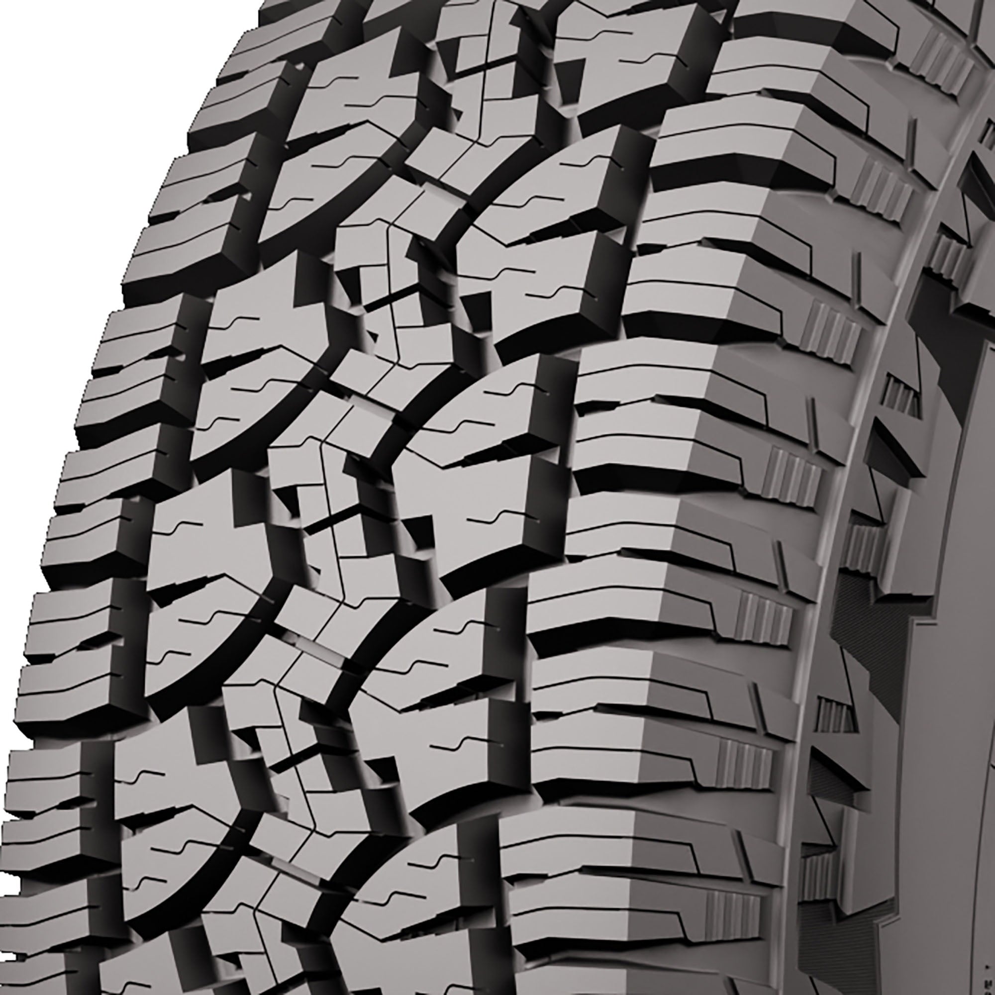 The Dextero All-Terrain DAT1 245/75R16 109T is a strong and dependable choice for SUVs and light trucks. Built with a rugged tread compound, these 245/75R16 109T truck tires resist cuts and chips to deliver long tread life. The aggressive self-cleaning tread pattern gives these all-terrain tires excellent grip on wet, dry, and off-road conditions, while also helping maintain consistent performance. Designed as durable automotive tires, they serve as reliable all-season tires that balance strength with comfort. These SUV tires are made to reduce road noise, ensuring a smooth and quiet ride whether on highways or challenging trails.