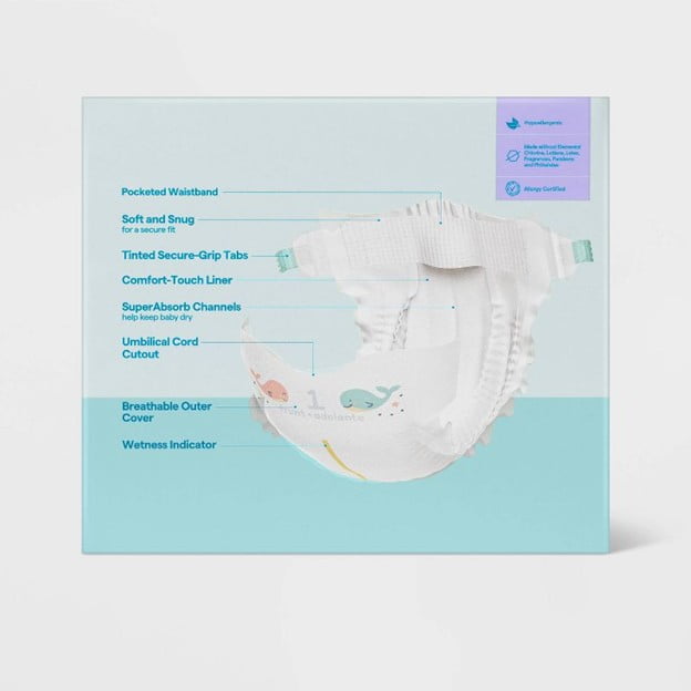 This Disposable Diapers Pack is a must-have addition to your newborn’s nursery. These new and improved diapers feature Super Absorb Channels that absorb wetness quickly to help keep your baby dry while offering up to 12 hours of leak protection. Plus, these disposable diapers have a comfort-touch liner that is clinically proven to be gentle and hypoallergenic. With soft and stretchy sides and a breathable outer cover, these premium absorbency diapers will provide dryness and comfort for your baby.