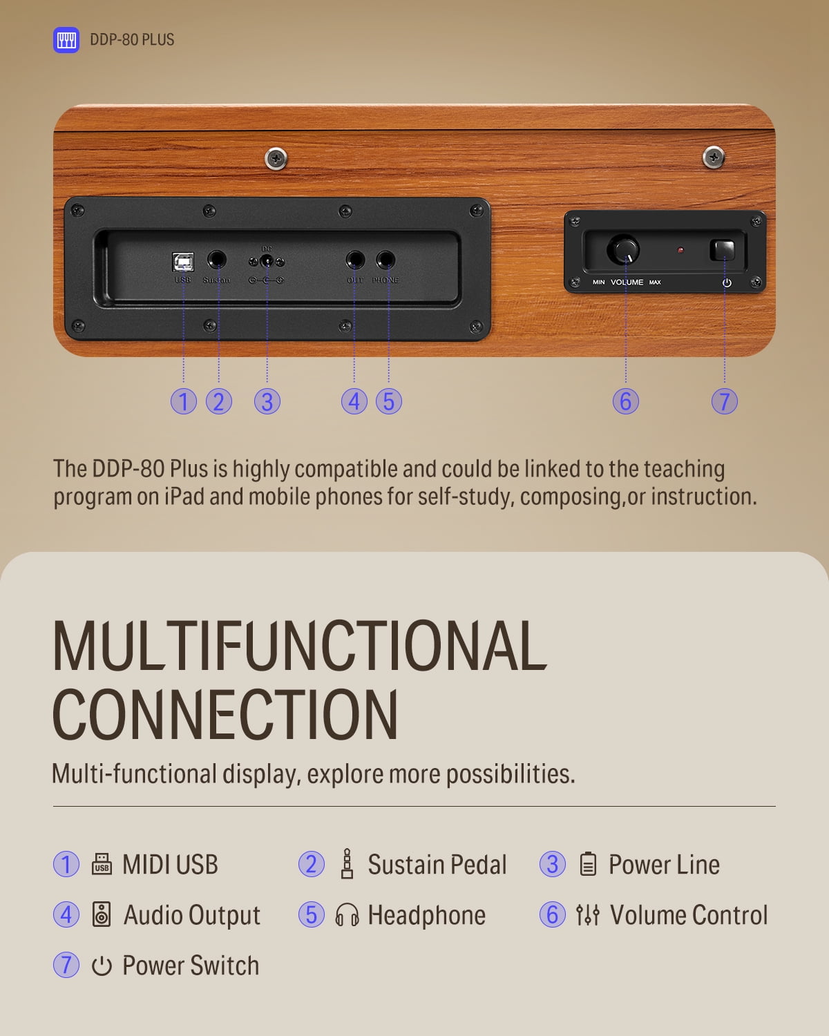 Donner DDP-80 PLUS Digital Piano 88 Key Weighted Keyboard, Supports US