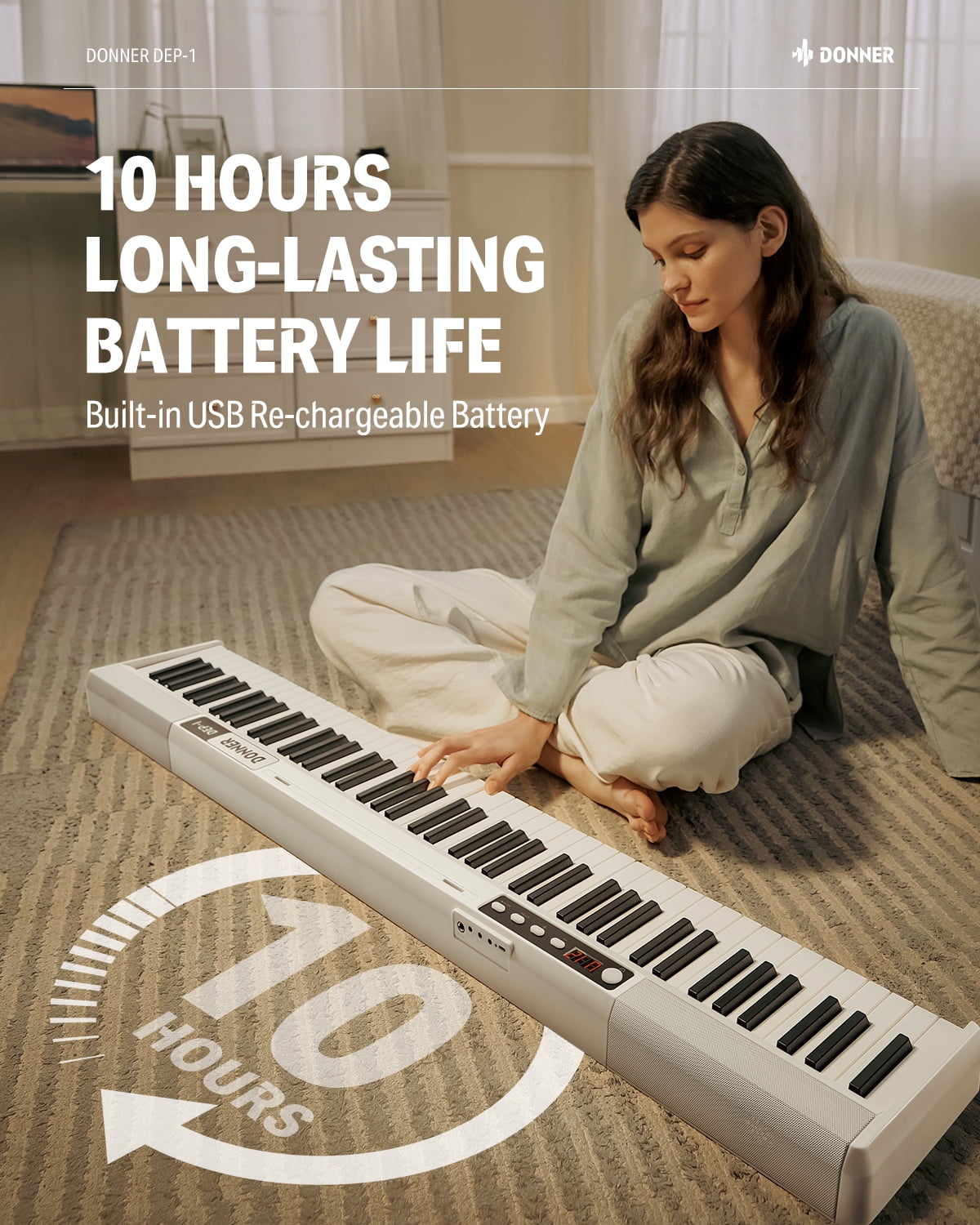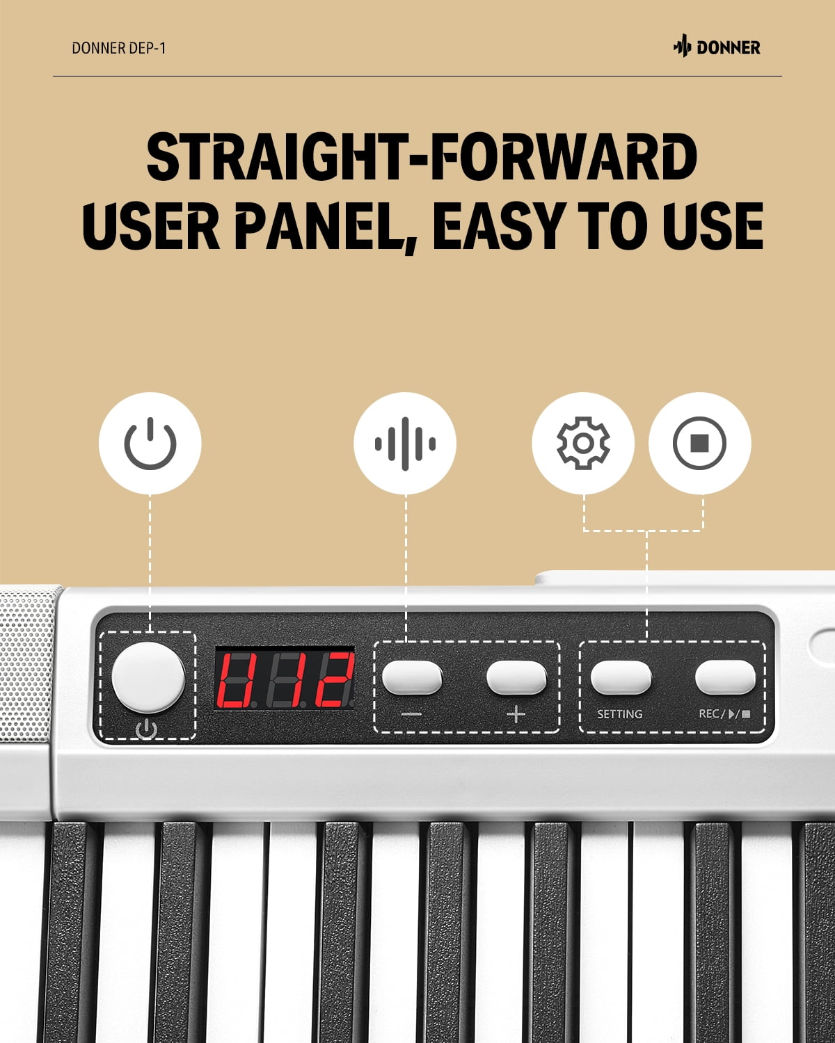 Beginner Digital Keyboard: The DEP-1 keyboard piano features 88 full-sized, velocity-sensitive keys, providing excellent key feedback for beginners. The dynamic keys ensure a certain rebound speed, allowing you to savor the lively dance of notes as your fingertips move freely. Vibrant & Dynamic Sound: The 88 key keyboard comes with a variety of features, including built-in auto-chord and adjustable reverb effects. It offers 128 tones, 20 demos, and 128 rhythms, allowing you to explore a wide range of music styles. Versatile Features: Wireless Audio feature allows the electric keyboard to function as a player. Wireless MIDI enables the connected software to send/receive MIDI signals, connecting to smart apps for functions like chord accompaniment and more. Enhanced Portability: The DEP-1 electronic keyboard weighs a mere 7 kg, featuring sleek and smooth lines. The piano body is light but solid, making it suitable for indoor practice, outdoor performance, and easy storage with a carrying case.