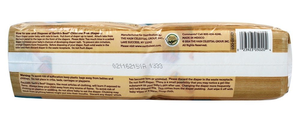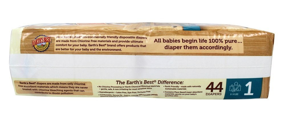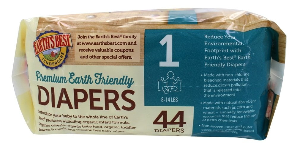 Earth's Best® Tendercare Diapers Size 1.Premium earth friendly.Superior absorbency.Comfortable and secure fit.Hypoallergenic.Chlorine free.Latex free.Dye free.Fragrance free. How to use and dispose of Earth's Best® chlorine free diapers: Place diaper under baby with tabs in back. Pull front of diaper up to navel. Attach tabs from the back panel to the tape on the front of the diapers. Please note: too much time in a soiled diaper increases your baby's chances of developing diaper rash. To prevent skin irritation, change diapers more frequently. Before disposing of your diaper, flush solid waste in the toilet and then discard diaper in the waste receptacle. Do not flush diaper.