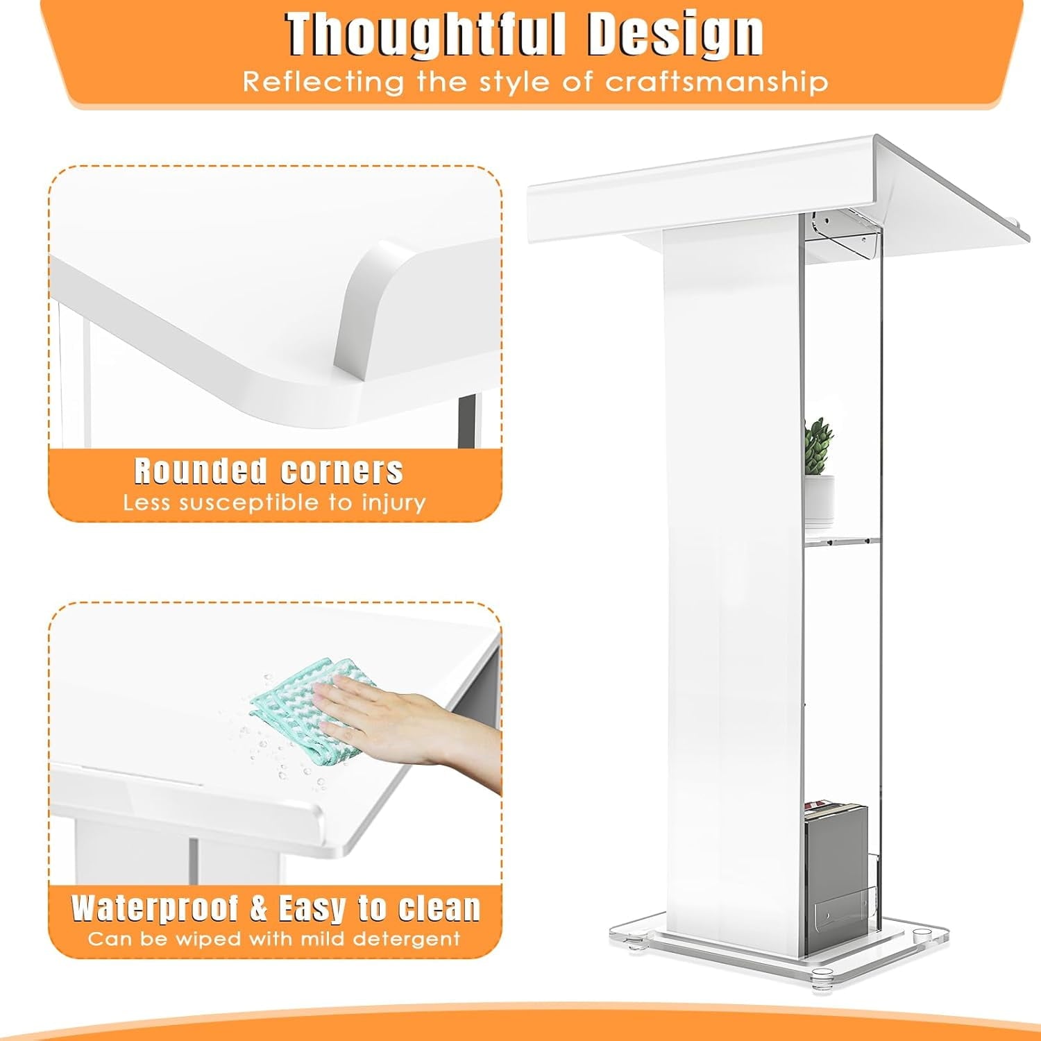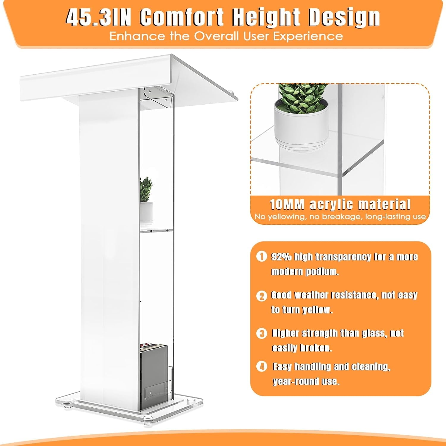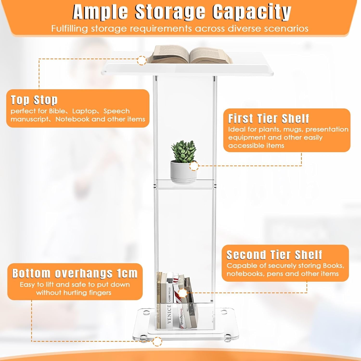 Esheno Church Pulpit with Storage Shelf 41.3 inch Ultra Clear Acrylic