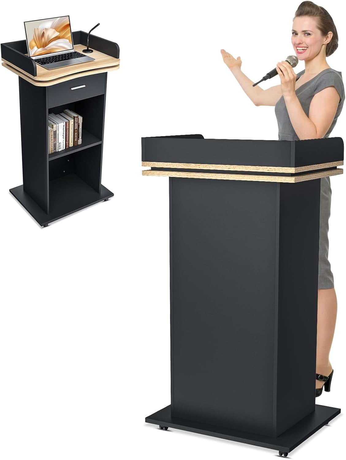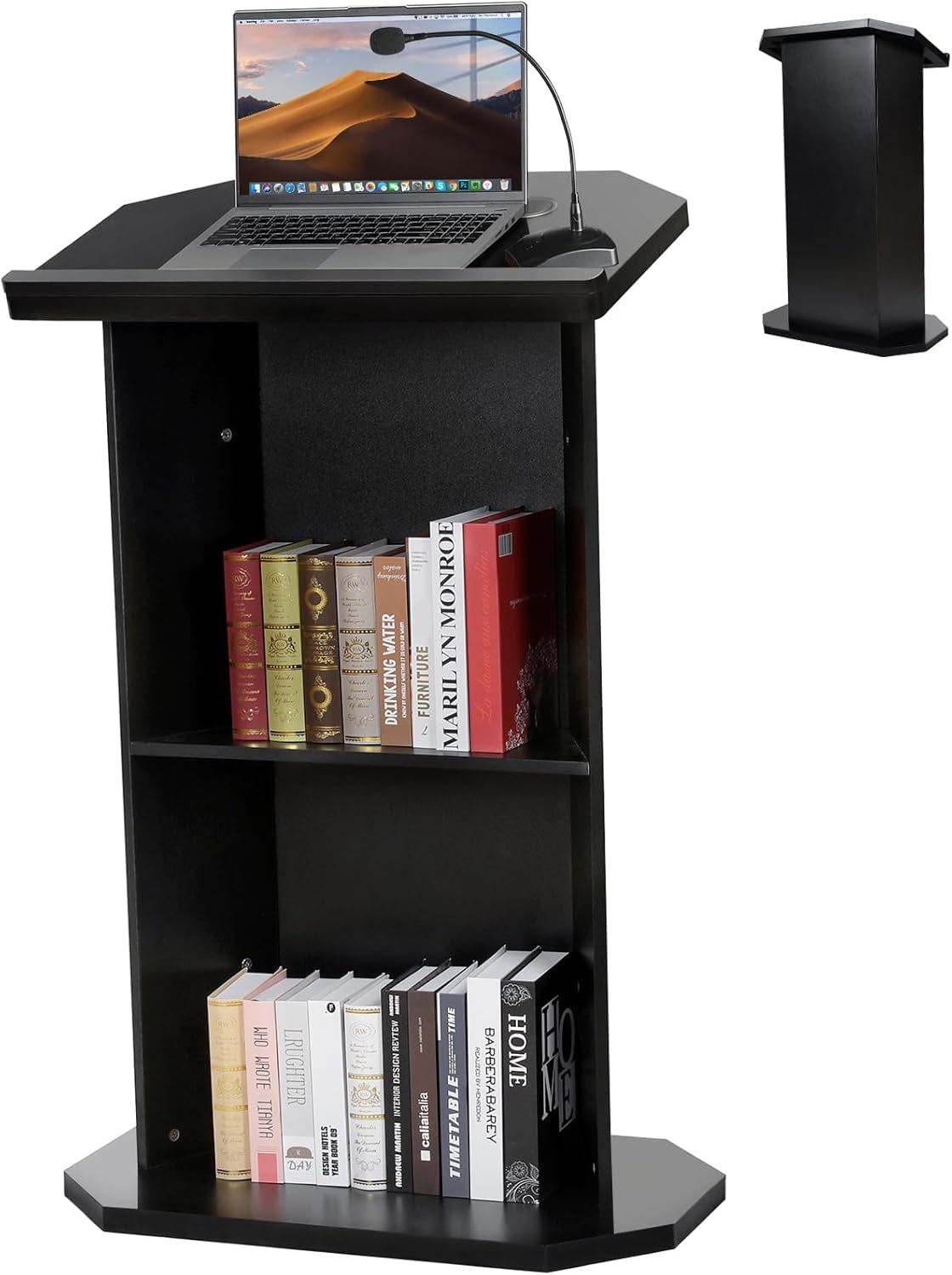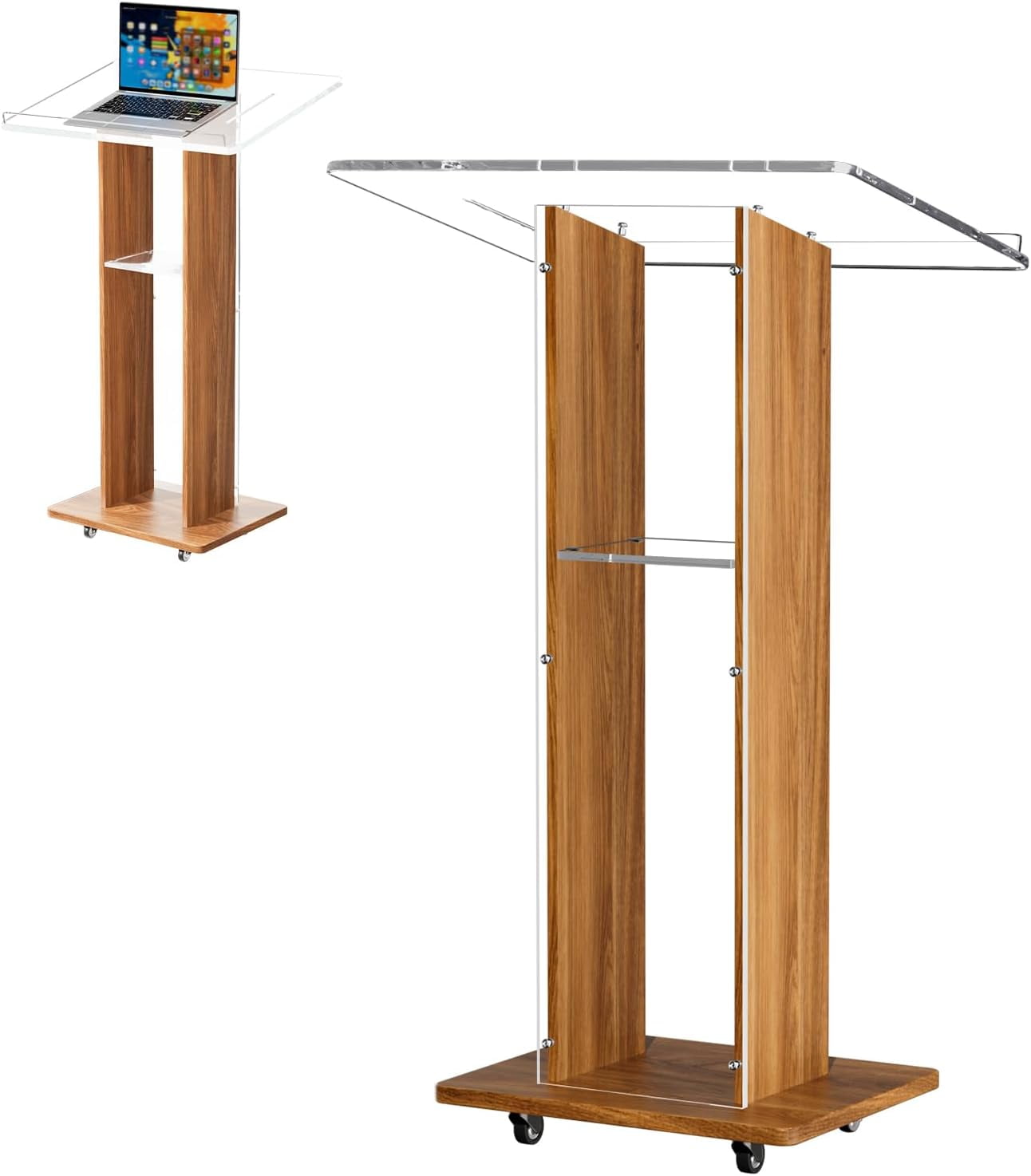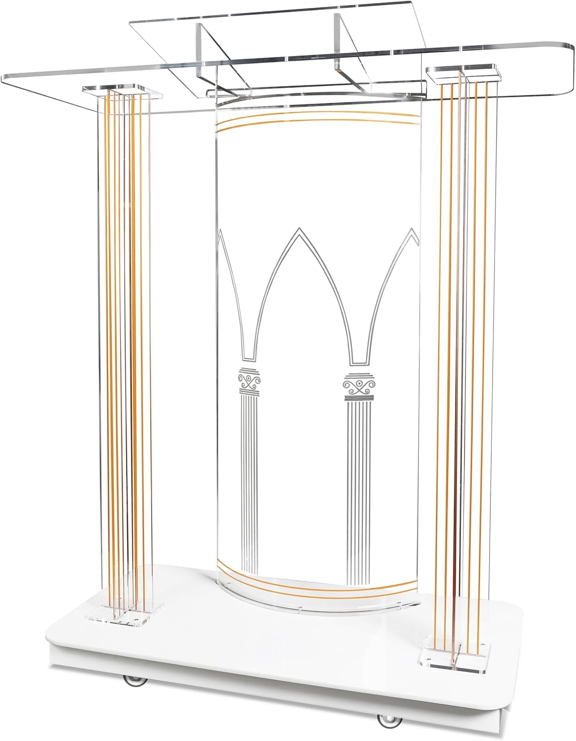 Esheno Acrylic Church Pulpit Collection offers 11 versatile models for various occasions: 46" mobile pulpit with wheels, 15 RGB LED colors (40x17.7x46.6", one with dust cover), two 43" clear acrylic podiums with wheels, 15 RGB lights and 4 flash modes (40x17.7x43", one with dust cover), 42.7" wheeled acrylic pulpit with 15 RGB LED lights (37.4x16.53x42.7"), two 42.5" ultra clear podiums with 15 color lights and storage shelf (23.6x16.1x45.2", one with 4 wheels), two 41.3" ultra clear acrylic stands with storage shelf (23.6x15.7x41.3", one with cross), and two 46.5" 3-tier pulpit with wheels, 15 color lights and 6-column base (39.4x17.7x46.5", one with dust cover). All models feature durable acrylic construction, suitable for church, wedding, concert, conference and classroom use, combining mobility, functionality and decorative lighting effects.Esheno Church Pulpit with Storage Shelf 41.3 inch Ultra Clear Acrylic Podium Stand Modern Lectern for Conference Speech No Cross Included.