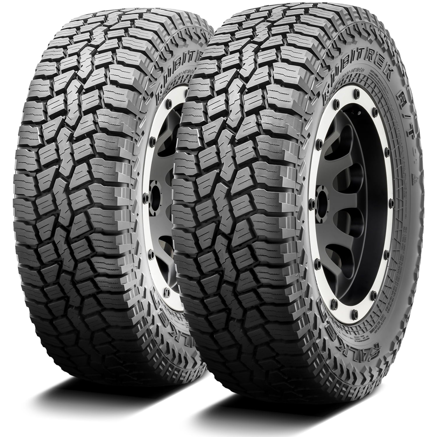 Falken Rubitrek A/T 265/70R17 115T OVERVIEW The Rubitrek A/T from Falken is an all-terrain tire that's built for every adventure, with an aggressive all-terrain tread pattern that has a class-leading 19/32" tread depth for reliable grip in mud, snow, sand, and gravel. Heat-diffusing technology in the lower sidewall prolongs tire life and enhances stability (especially for towing), and the Rubitrek A/T features a tough silica-rich rubber compound for wet-weather traction and long wear. Offset shoulder blocks wrap around onto the upper sidewall for lateral traction and clawing out of ruts, and the Rubitrek A/T is protected by a 55,000 mile limited manufacturer tread life warranty.