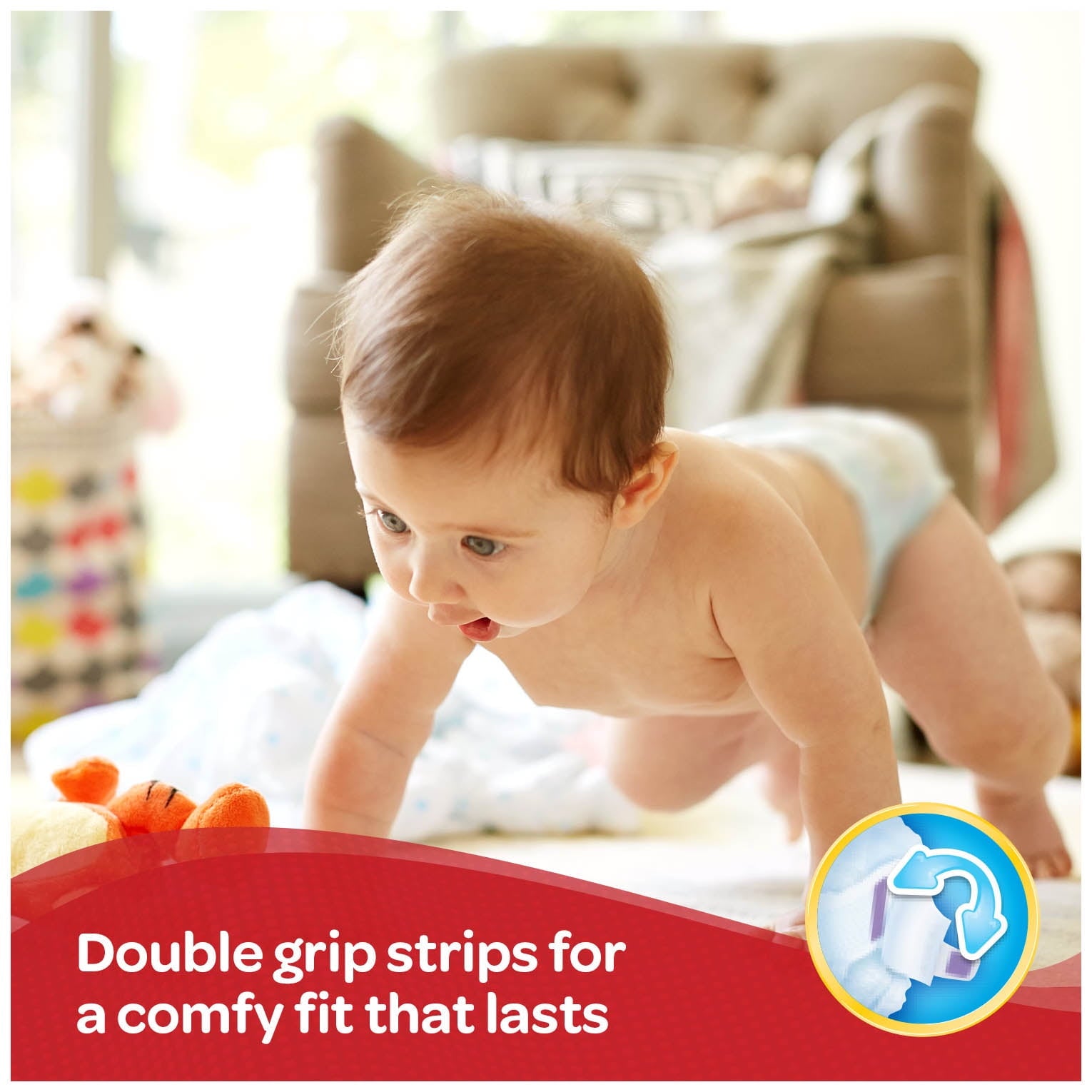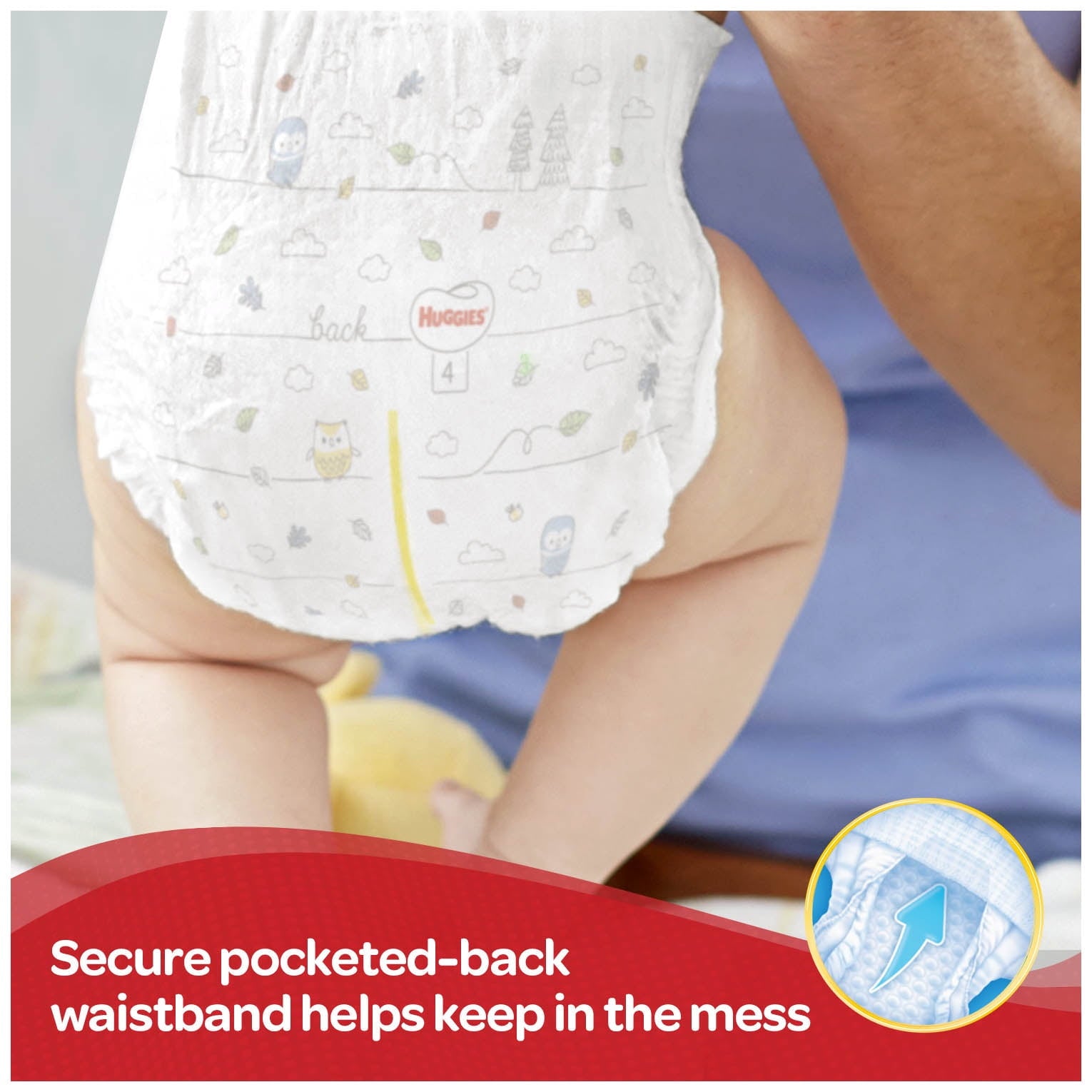 Huggies Little Snugglers diapers are our best diaper for skin care. With features like the pocketed-back waistband and DryTouch* liner that absorbs moisture on contact, Little Snugglers help keep your baby?s delicate skin clean and healthy. Little Snugglers diapers also embrace your baby in a soft, breathable outer cover to help keep them comfortable. Little Snugglers diapers have double grip strips for a comfy fit that lasts, plus a wetness indicator that lets you know when it?s time for a change. In addition, Little Snugglers disposable diapers are fragrance-free, and feature adorable designs with Disney's Winnie the Pooh. Start your diaper-changing routine with Huggies Natural Care Wipes for a soft, gentle clean, then finish with Little Snugglers diapers. Join Huggies Rewards to earn points on all your Huggies purchases. Little Snugglers disposable diapers come in sizes Preemie (up to 6 lb.), Newborn (up to 10 lb.), 1 (up to 14 lb.), 2 (12-18 lb.), 3 (16-28 lb.), 4 (22-37 lb.), 5 (27+ lb.).