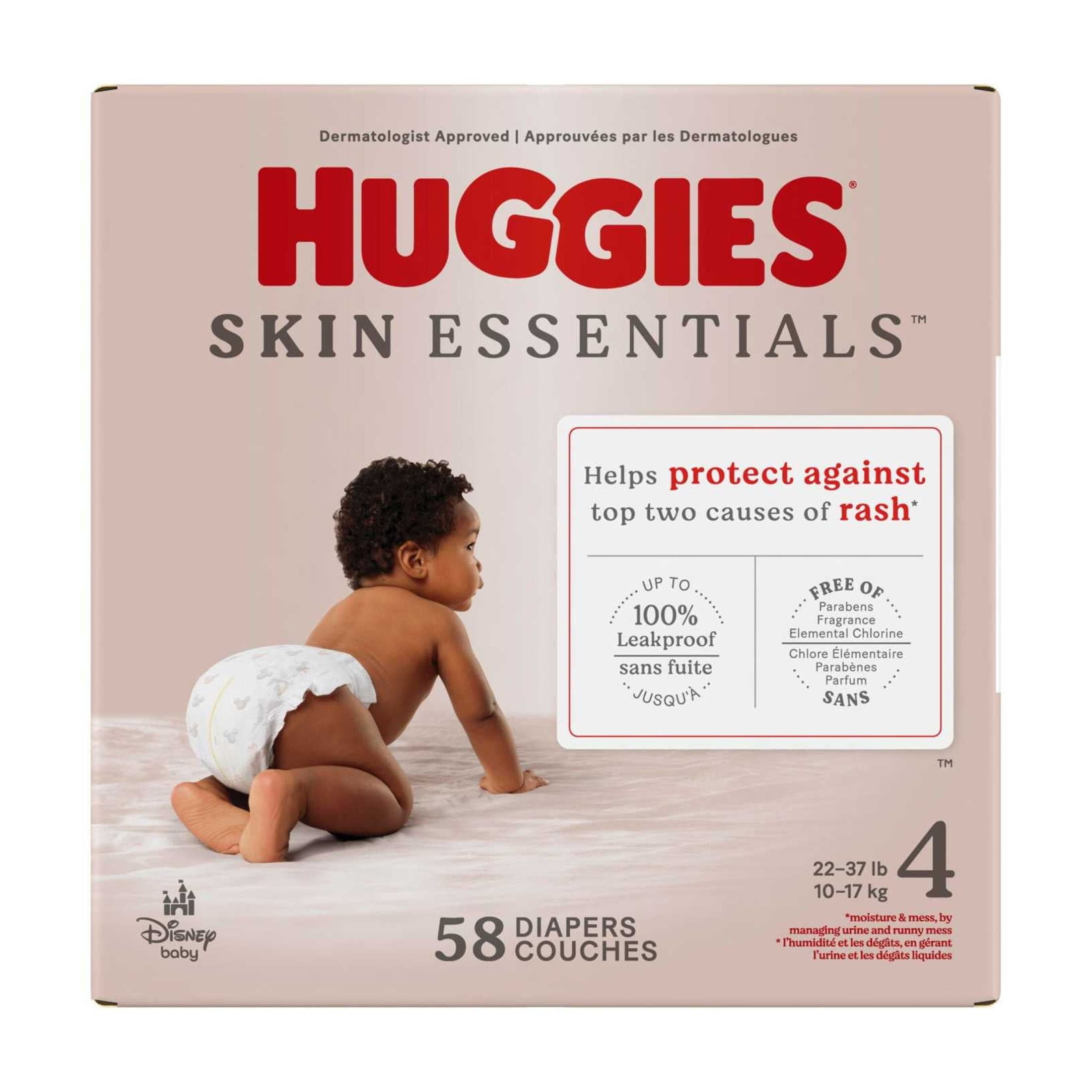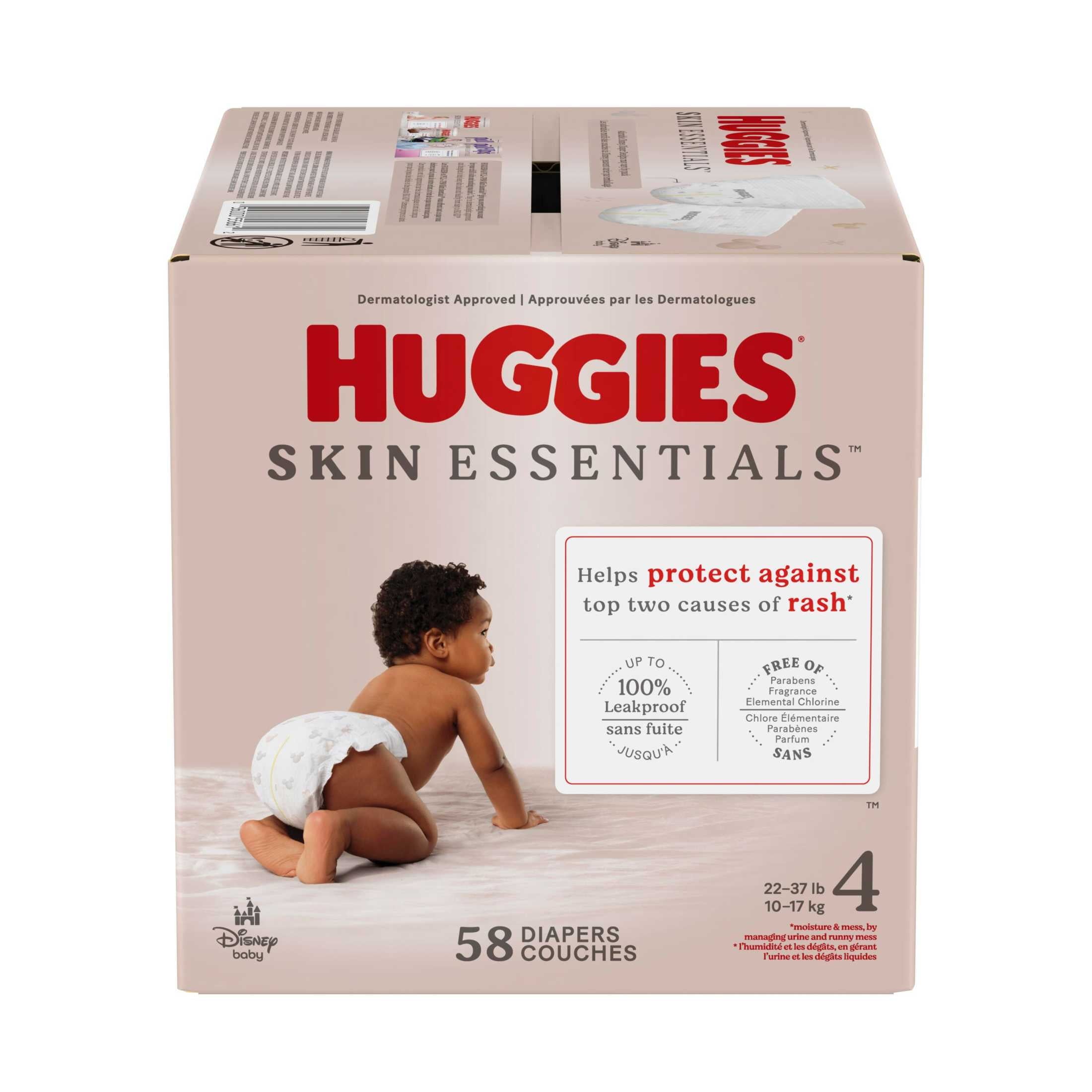 Huggies Skin Essentials Baby Diapers, Size 4 (22-37 lbs), 58 Count (Se