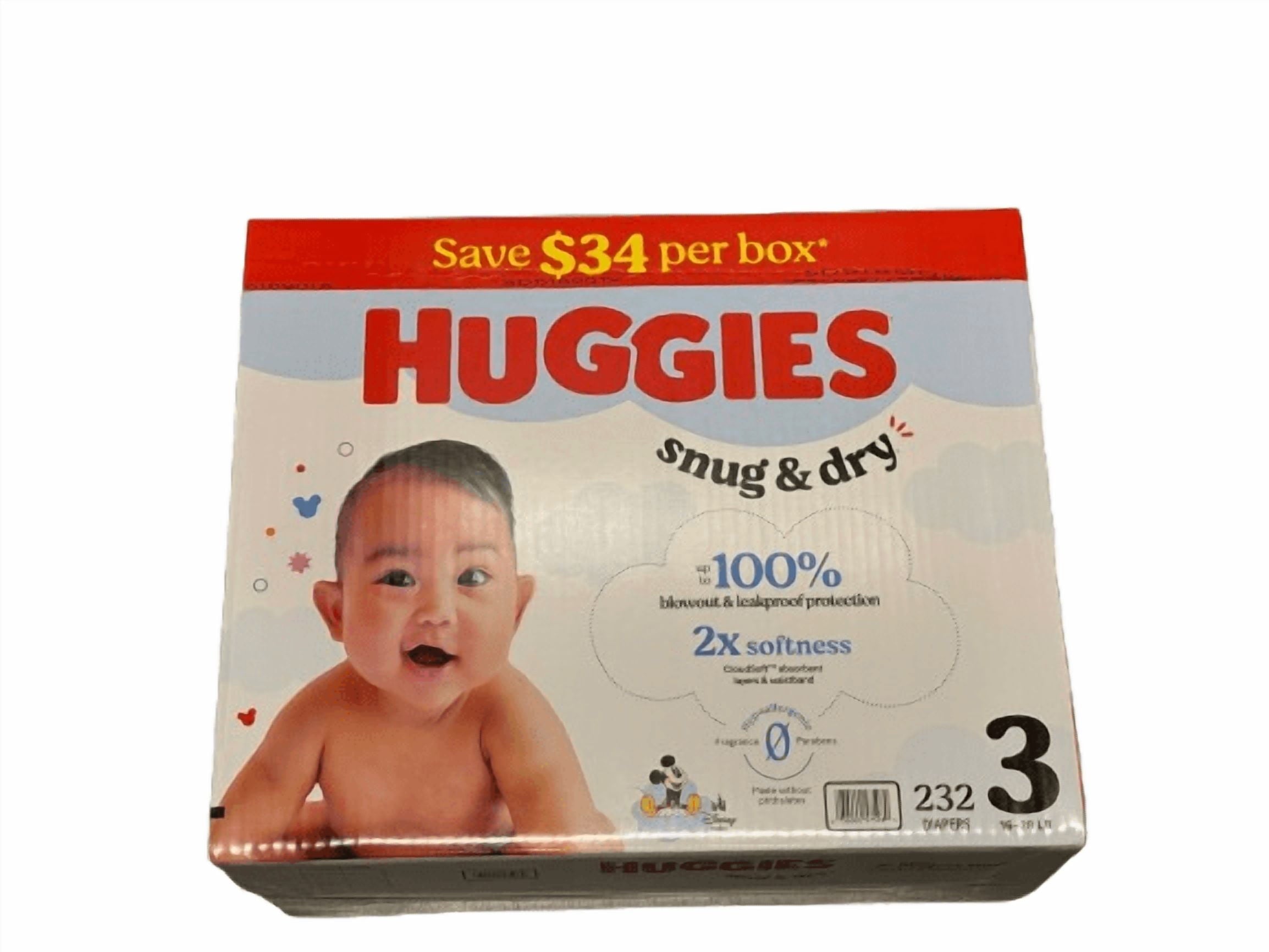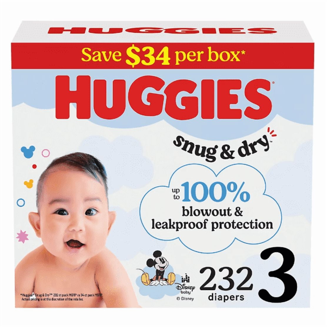Huggies Snug & Dry Leakproof Baby Diapers, Size 3 (16-28 lbs), 232 Cou