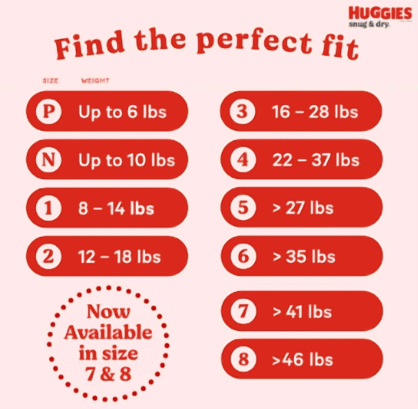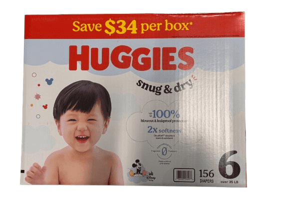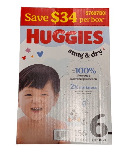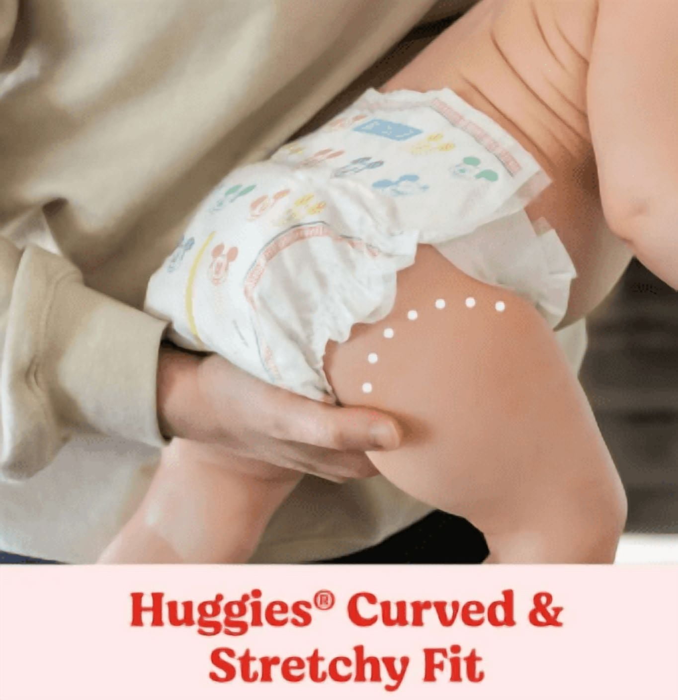 Huggies Snug & Dry Baby Diapers are designed to stay in place through active play! These disposable baby diapers are designed for worry-free running, jumping and playing. Each Snug & Dry diaper is up to 100% leak-free (even for blowouts!) and offers up to 12 hours of comfortable protection. They feature a curved and stretchy fit and a waistband designed to prevent leaks and help keep your baby comfortable while on the move. Double Grip Strips provide a secure, flexible fit and diaper is designed to help eliminate gaps at the legs and waist. These Huggies diapers are extra soft and contoured around the legs to help provide red-mark free, gentle protection.