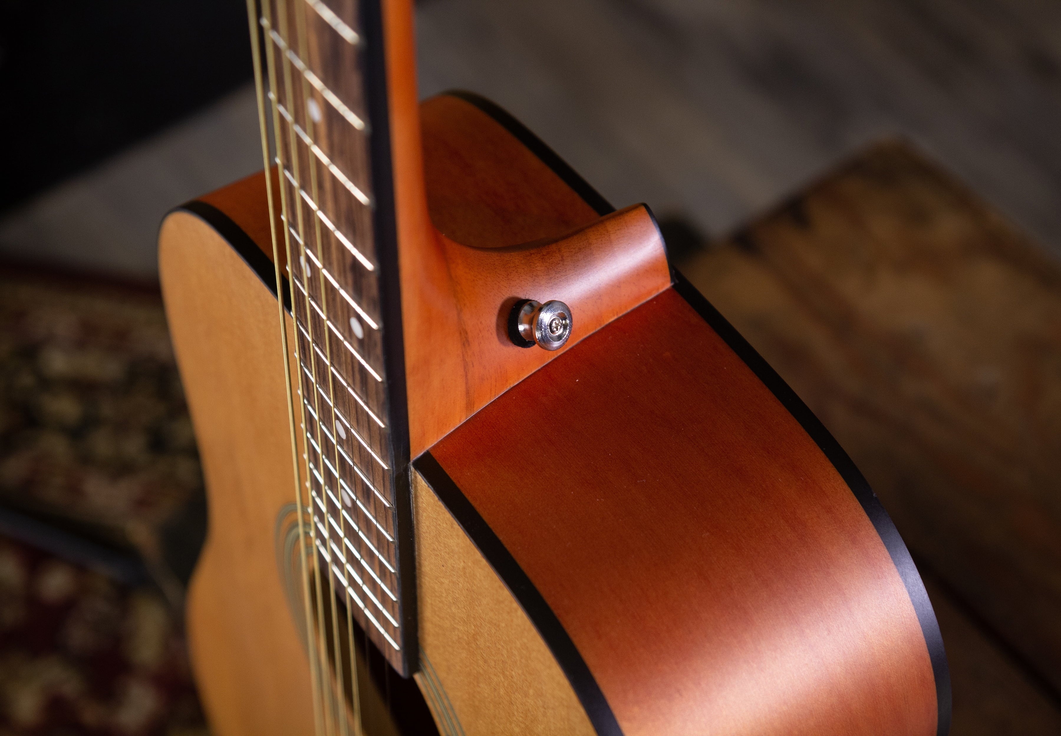 The Jasmine S35 features a dreadnought body shape, offering a big, bold sound, perfect for beginners and seasoned players alike. With a smooth satin finish, it ensures excellent sound quality and resonance. The slim neck design allows for comfortable playability, while the full 25.5″ scale length adds to its ease of use. This guitar is crafted to provide a great playing experience with its well-built design and quality materials.