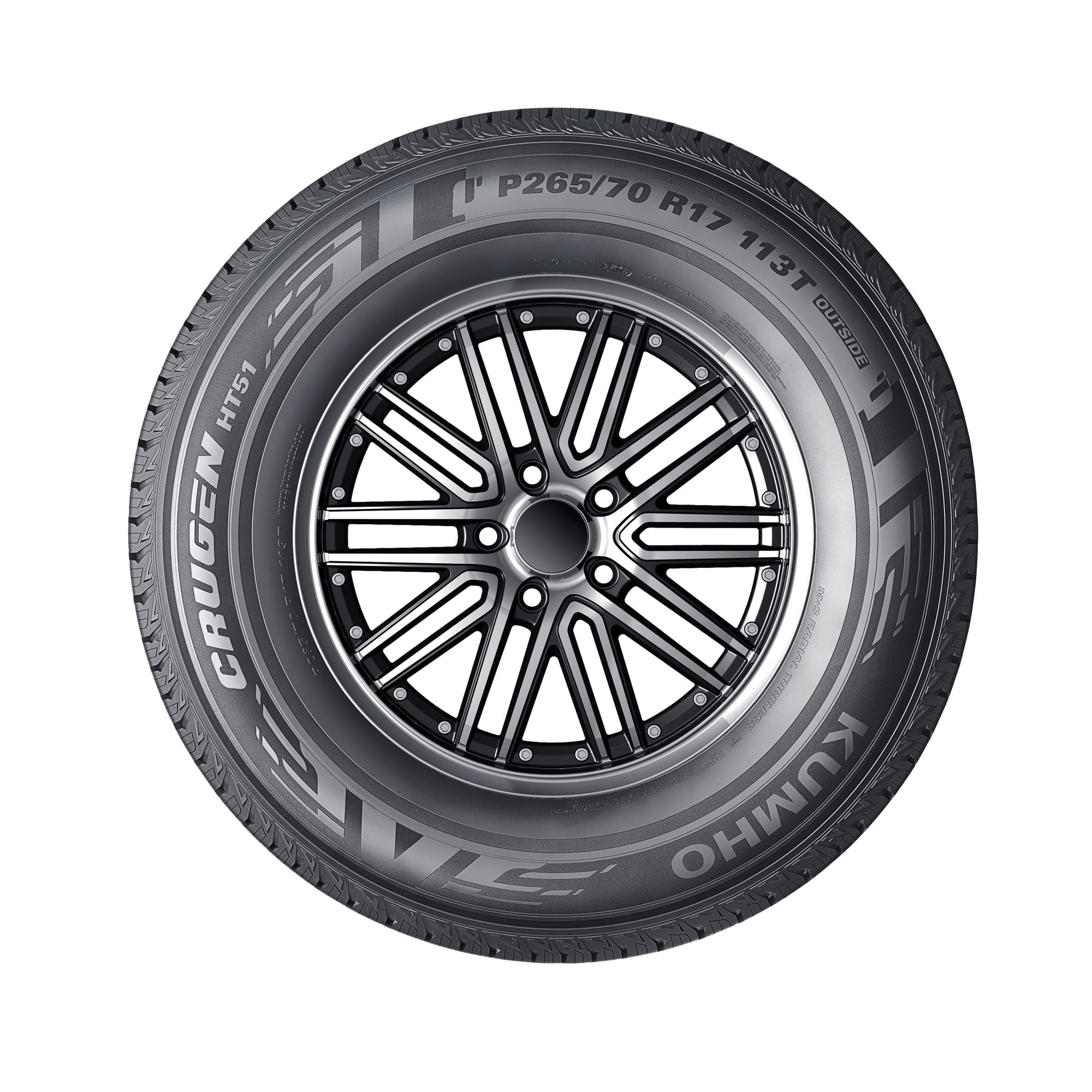 Kumho Crugen HT51 265/65R17 112T OVERVIEW Kumho's Crugen HT51 is an all-season tire that's designed for use on light trucks and SUVs and features a stiff center block that improves traction and handling performance. Backed by a 70,000 mile limited manufacturer tread life warranty for P-metric sizes and a 45,000 mile limited manufacturer tread life warranty for LT-metric sizes, the Crugen HT51's 3D siping bites into the road to boost handling and traction on snowy roads while also reducing uneven wear for a longer tread life.