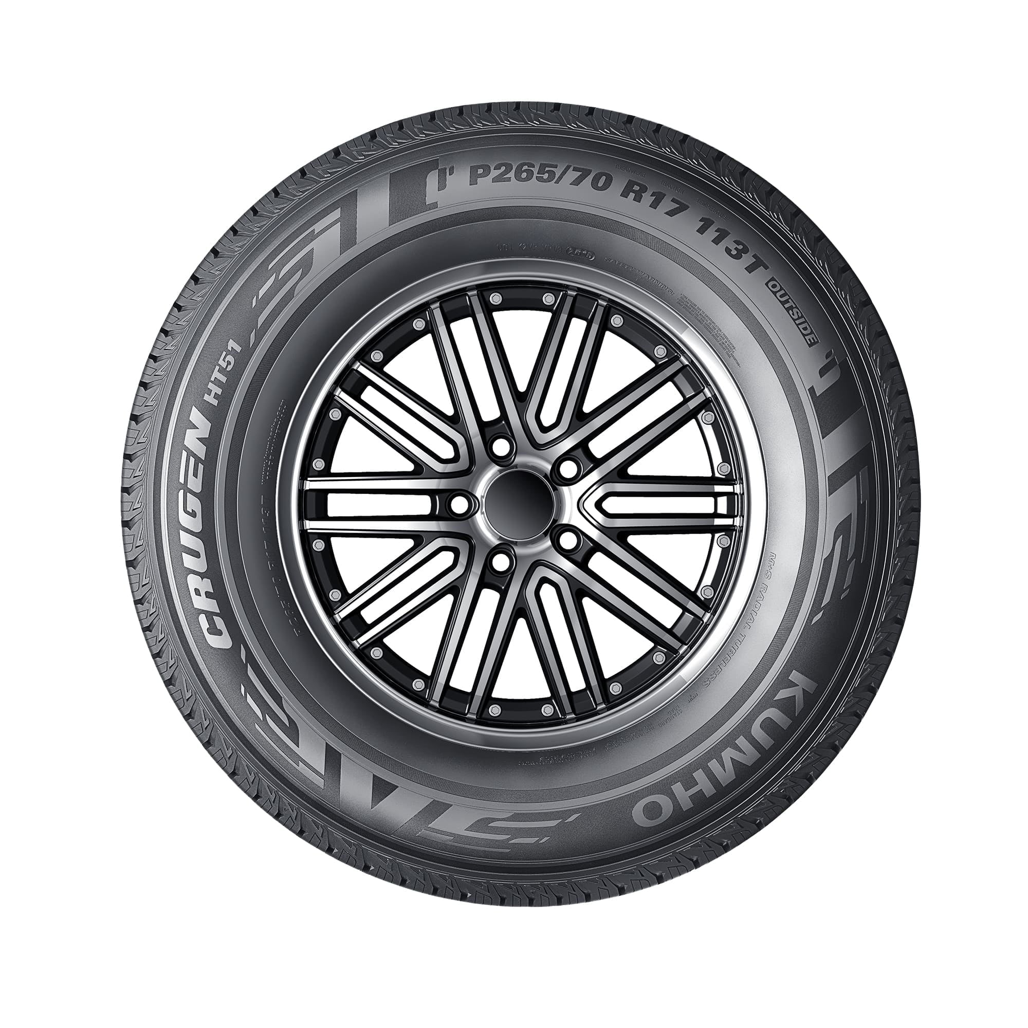Kumho Crugen HT51 245/55R19 103T OVERVIEW Kumho's Crugen HT51 is an all-weather tire that's designed for use on light trucks and SUVs and features a stiff center block that improves traction and handling performance. Backed by a 70,000 mile limited manufacturer tread life warranty for P-metric sizes and a 45,000 mile limited manufacturer tread life warranty for LT-metric sizes, the Crugen HT51's 3D siping bites into the road to boost handling and traction on snowy roads while also reducing uneven wear for a longer tread life.