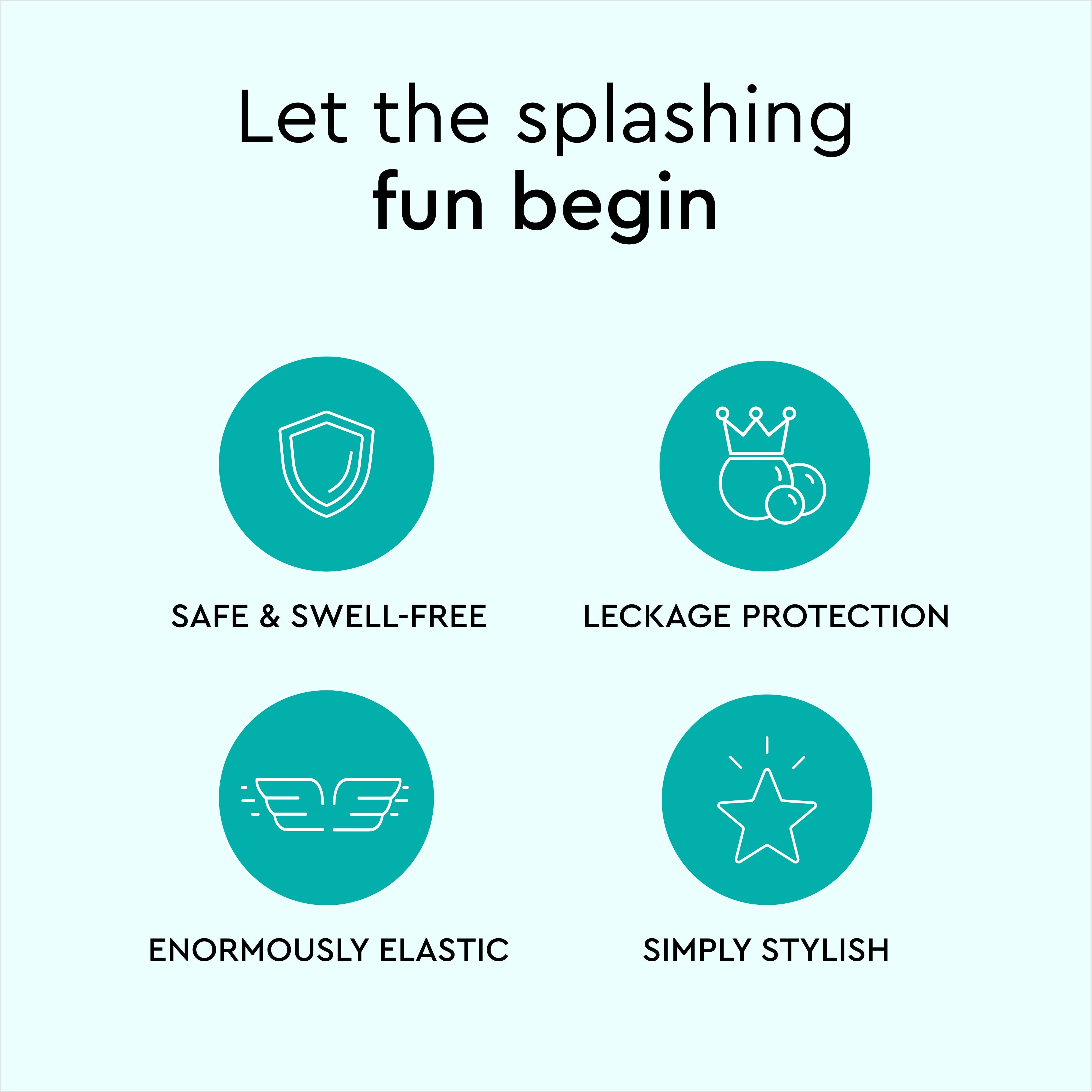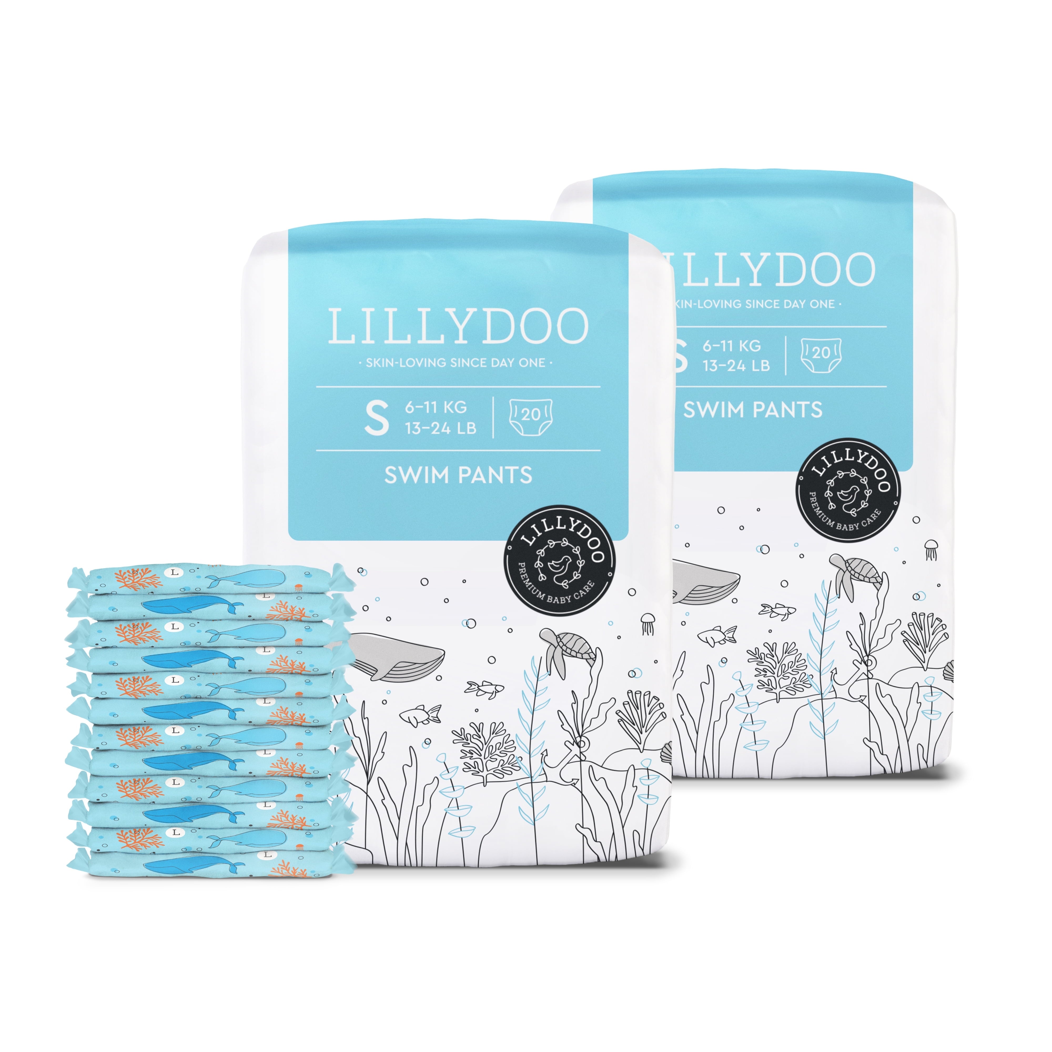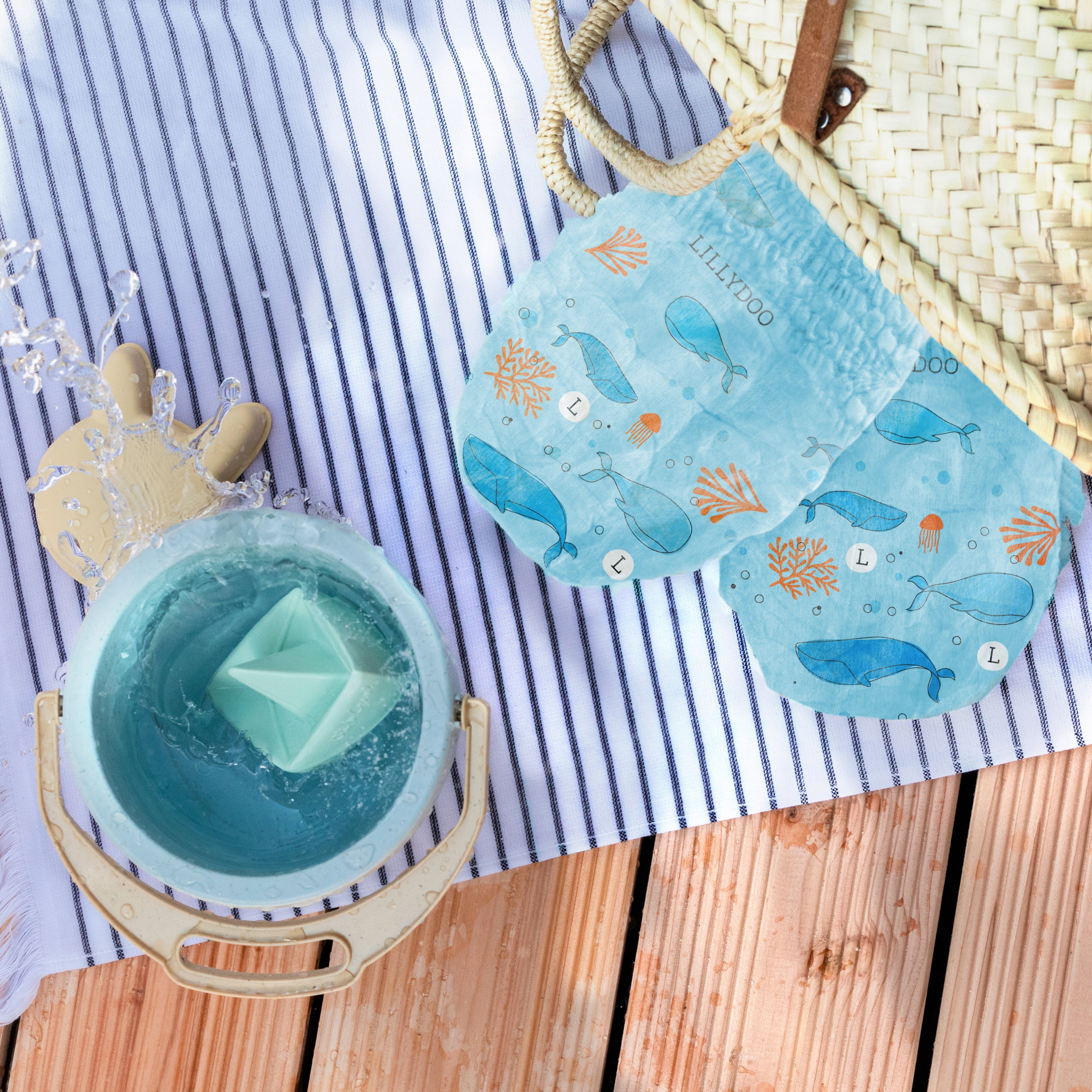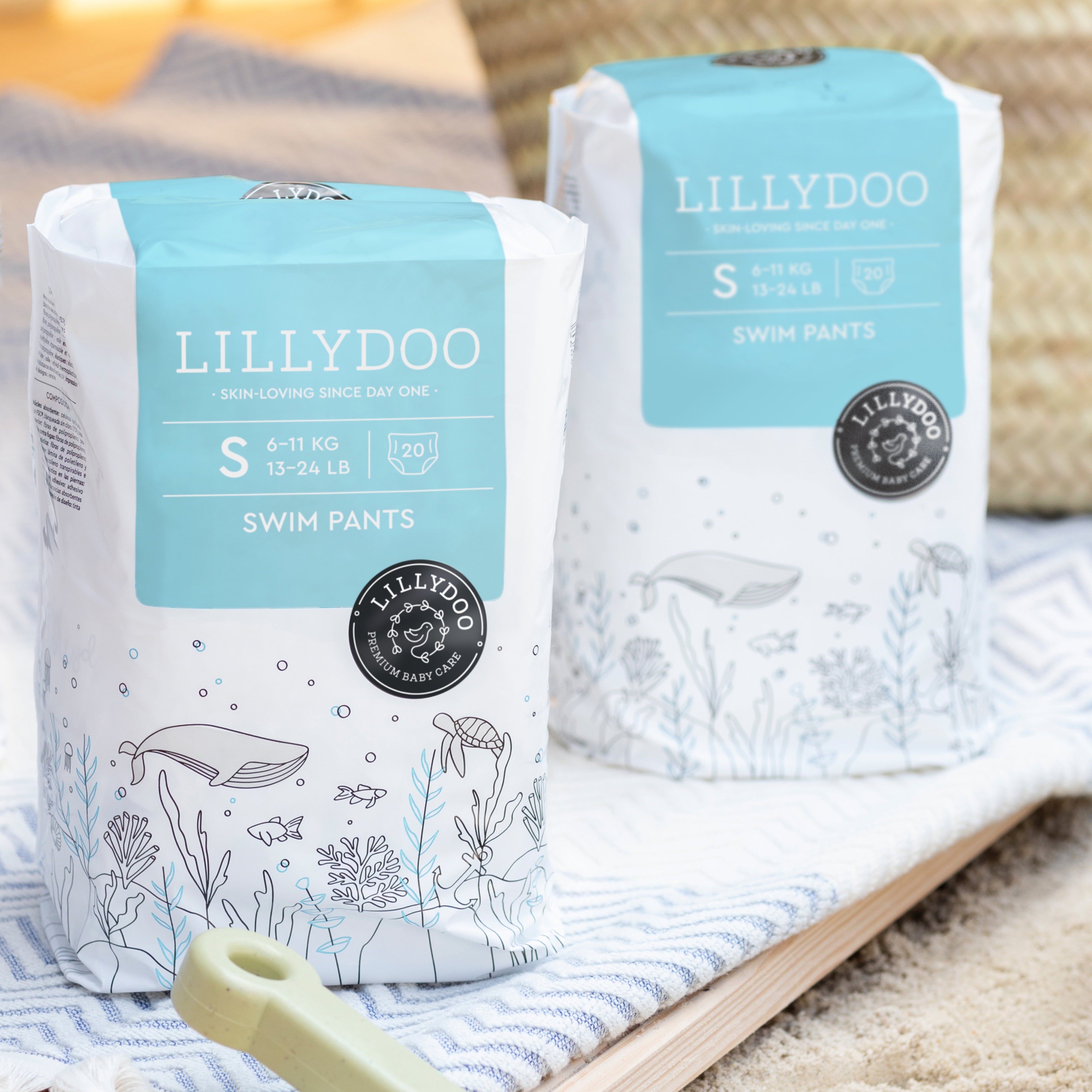 Make a splash with LILLYDOO Swim Pants in the Blue Whales Swim Deep design – the perfect companion for sunny pool days, beach trips or backyard water fun. These swim pants are thoughtfully designed to combine comfort, movement and reliable protection, so your little water lover can focus on what really matters: having fun. With a smart absorbent core that stays light even when wet, your little sailor can move freely and comfortably in and out of the water. Stretchy leg cuffs provide a secure fit that gently adapts to every kick and splash — no pinching, no slipping. Breathable materials help maintain a soft and comfortable feel . And when it’s time to change? With their easy-pull-on design and quick tear sides, changing is a breeze - so you're back in the water in no time. Like our LILLYDOO diapers and diaper pants, our swim pants are dermatologist tested, skin-friendly and free from perfumes.