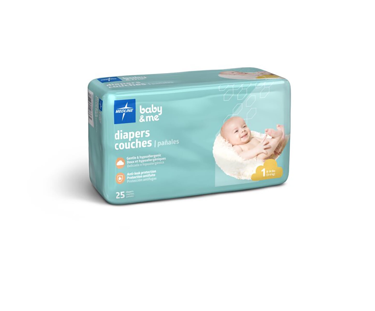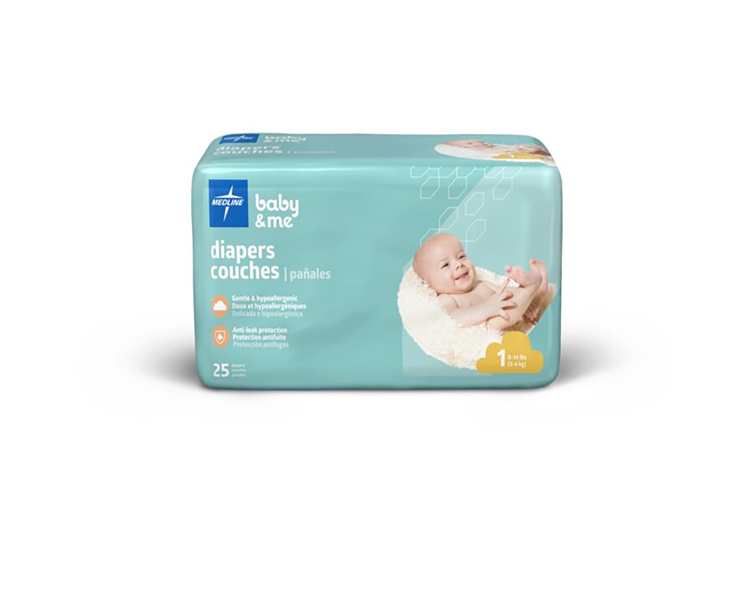 Medline Disposable Baby Diapers, Size 1 (8-14 lbs), Case of 200