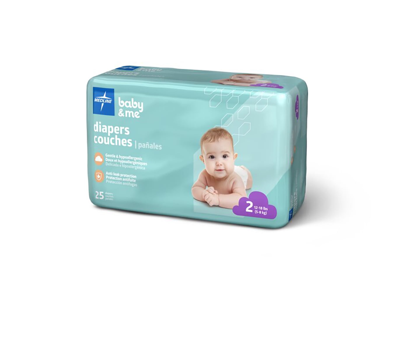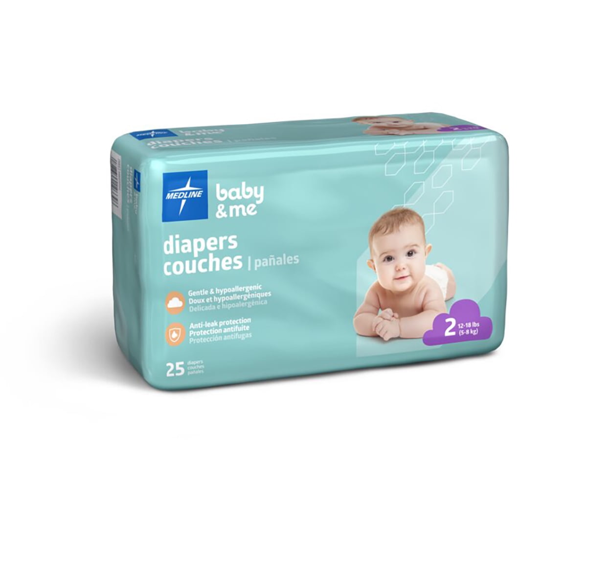 Experience superior comfort and protection with Premium Medline Diapers, designed to compare with national brands. Ultra-Absorbent Core: Keeps your baby dry by wicking moisture away efficiently. Gentle on Skin: Made from soft, cloth-like materials that are kind to your baby’s delicate skin. Leak Protection: Stretch waistbands and antileak guards help contain messy leaks. Custom Fit: Stretch side panels and repositionable tabs ensure a snug, custom fit for your baby. Package Details: Size: 2 (12-18 lbs.) Quantity: 8 bags of 25 diapers, totaling 200 diapers. Give your baby the best with Premium Medline Diapers, combining comfort, protection, and a perfect fit.