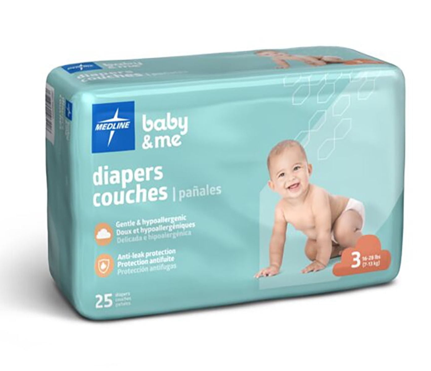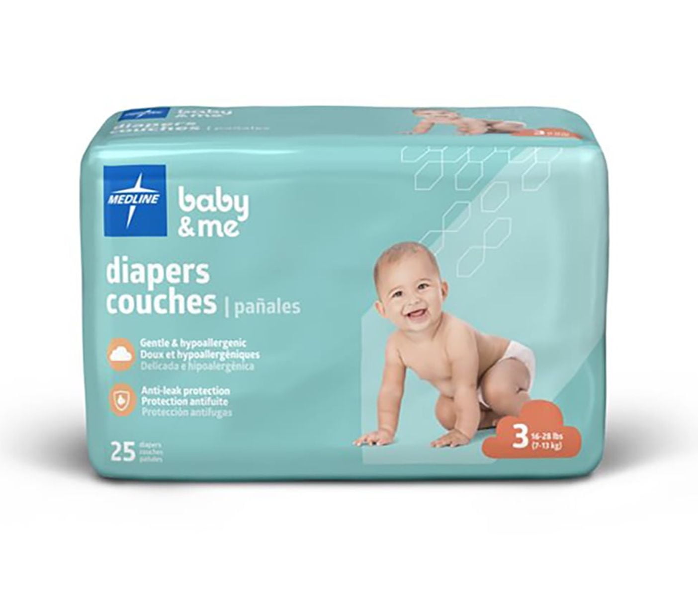 Experience superior comfort and protection with Premium Medline Diapers, designed to compare with national brands. Ultra-Absorbent Core: Keeps your baby dry by wicking moisture away efficiently. Gentle on Skin: Made from soft, cloth-like materials that are kind to your baby’s delicate skin. Leak Protection: Stretch waistbands and antileak guards help contain messy leaks. Custom Fit: Stretch side panels and repositionable tabs ensure a snug, custom fit for your baby. Package Details: Size: 3 (16-28 lbs.) Quantity: 8 bags of 25 diapers, totaling 200 diapers. Give your baby the best with Premium Medline Diapers, combining comfort, protection, and a perfect fit.