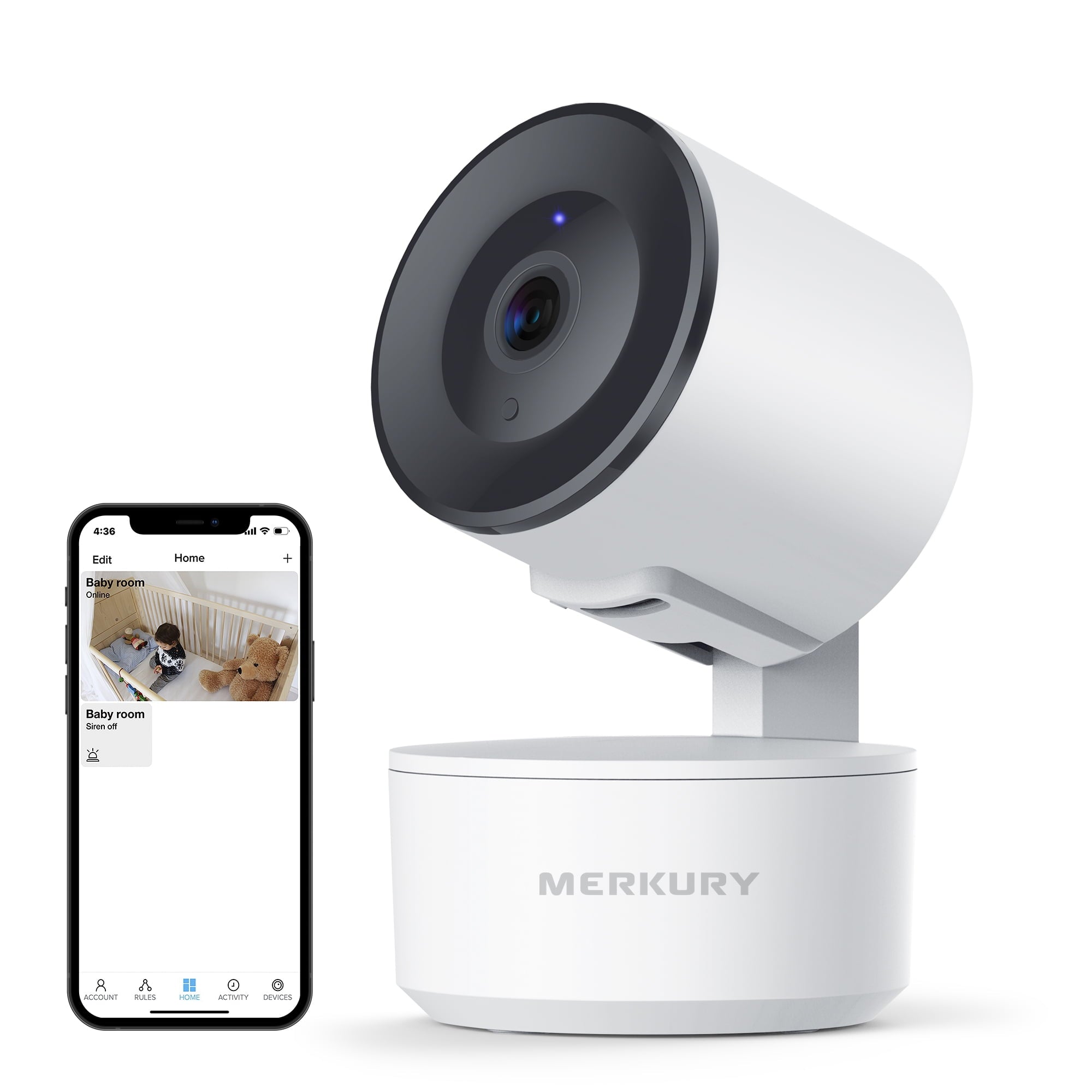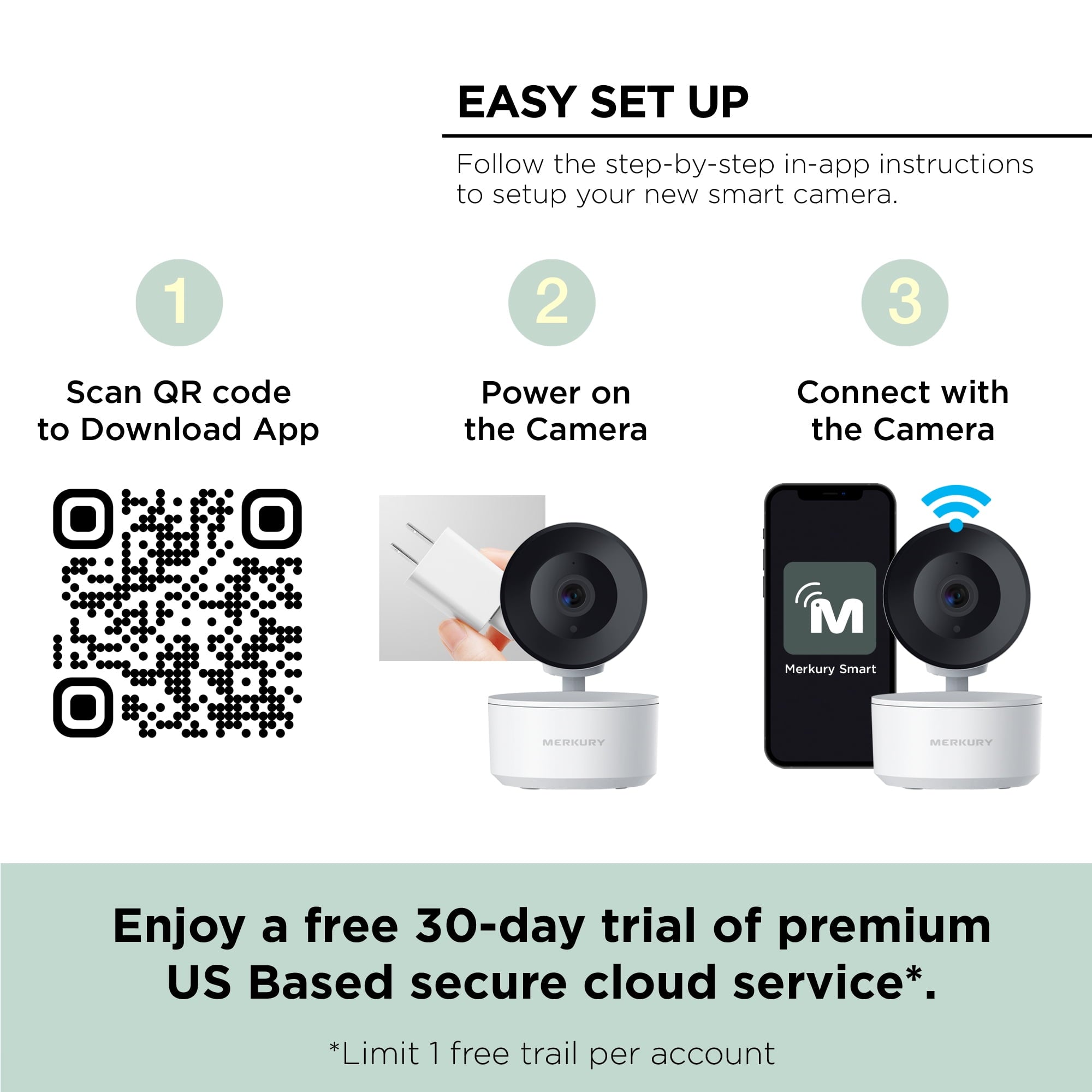 The Merkury Smart Auto-Follow Camera offers intelligent motion tracking to keep what matters most in view. Using advanced detection, the camera automatically follows movement, adjusting its angle to track kids, pets, or intruders. Control the camera via the app for manual rotation or enable auto-follow to track motion seamlessly. Compatible with Alexa and Google, you can use voice control for hands-free operation. With 2-way audio, night vision, pan and tilt functionality, and secure Wi-Fi control, this camera ensures comprehensive home monitoring. Store footage via cloud service (with a 1-month free trial) or on a microSD card (up to 128GB).