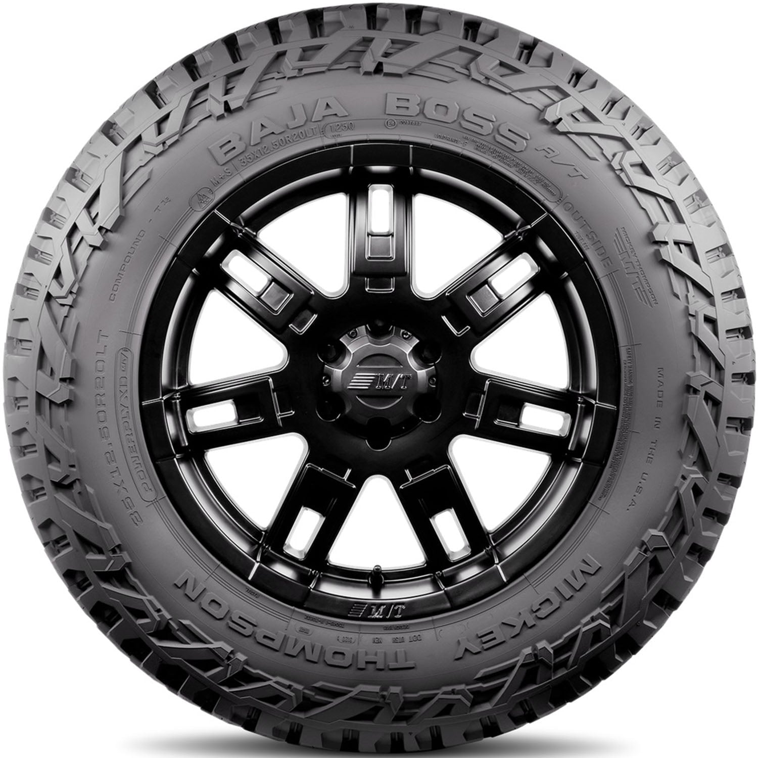 Mickey Thompson Baja Boss A/T LT35X12.50R17 119Q D OVERVIEW Mickey Thompson's Baja Boss A/T is an ultra premium, hybrid all terrain tire that takes the best features of the Baja ATZ P3 and improves upon it dramatically to meet today's demands for performance and quality. Ideal for use on smaller trucks, dually applications, and wide wheel fitments, the Baja Boss A/T's all new silica reinforced compound increase all weather traction, improve on road tread wear, boost cut and chip resistance, and strengthen wet handling and braking performance.