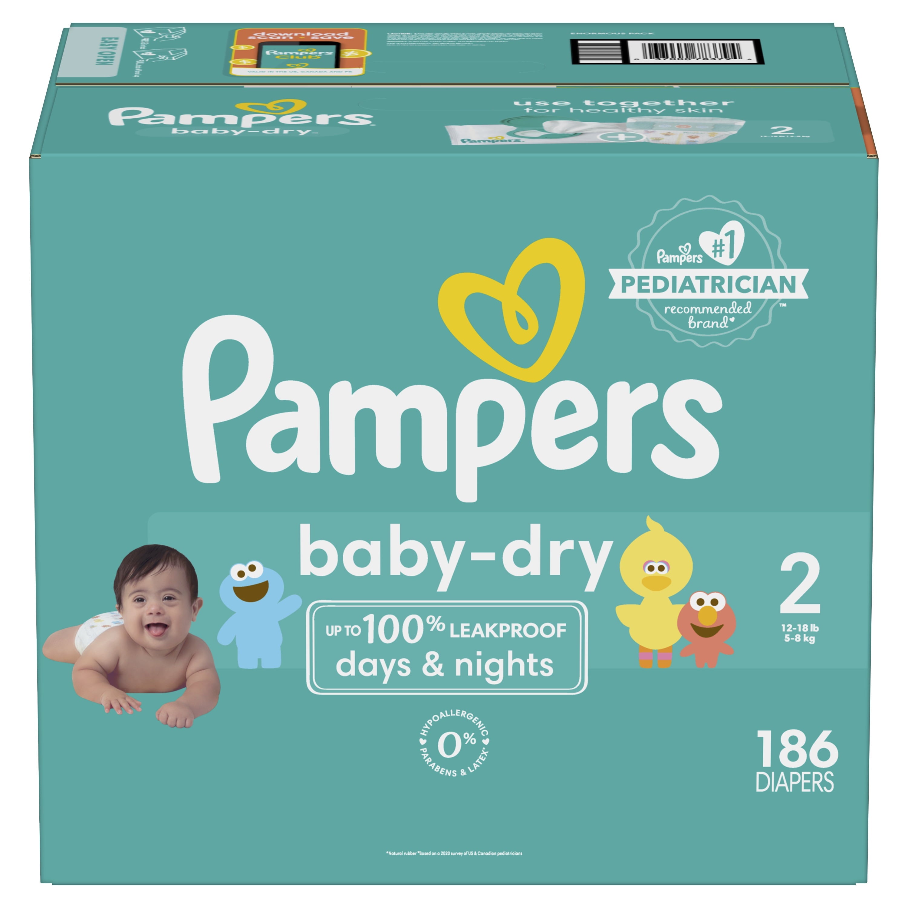 Pampers Baby Dry Diapers Size 2, 186 Count (Select for More Options)