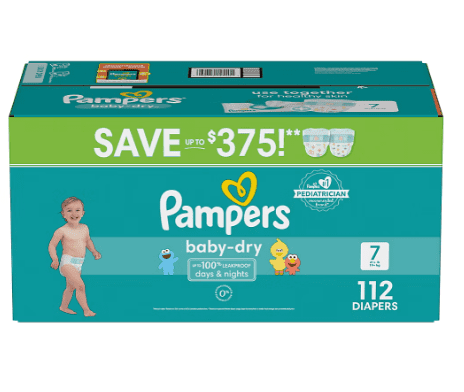 Pampers Baby Dry Diapers Size 7 (41+ lb) provide up to 100% leakproof protection for your baby's nighttime needs. The exclusive LockAway Channels absorb wetness and lock it safely away, while the Dri-Weave Liner helps keep your baby's delicate skin dry and healthy. Designed with stretchy sides and large tape fasteners, these hypoallergenic diapers offer a secure and comfortable fit to prevent blowouts. With 112 diapers in the pack, you can enjoy a good night's sleep for your little one.