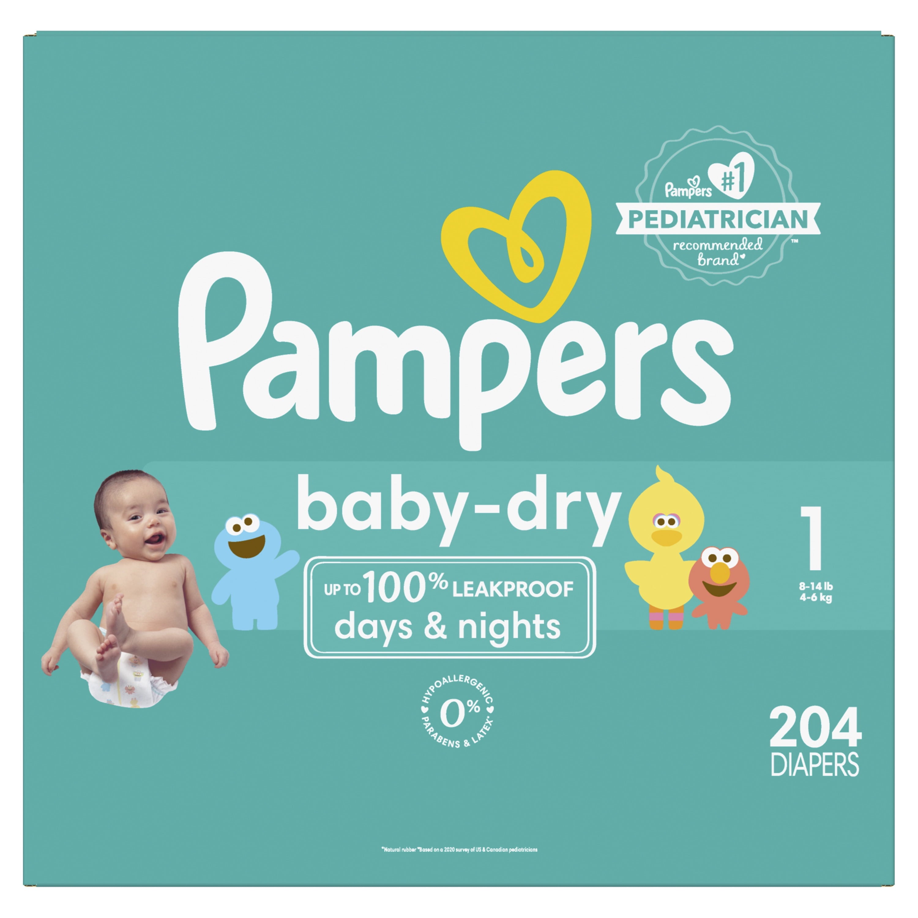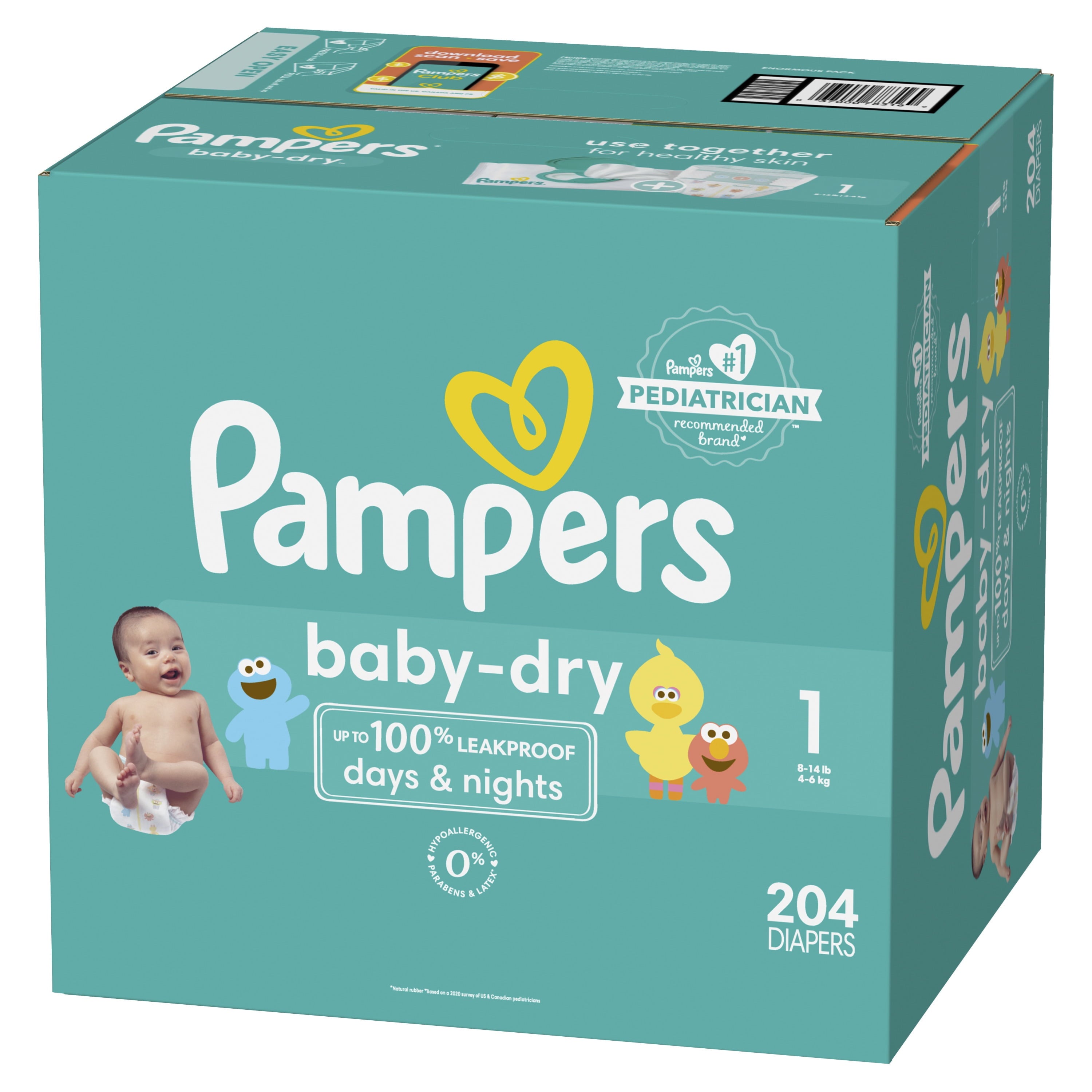 Pampers Baby-Dry Extra Protection Diapers, Size 1, 204 Ct