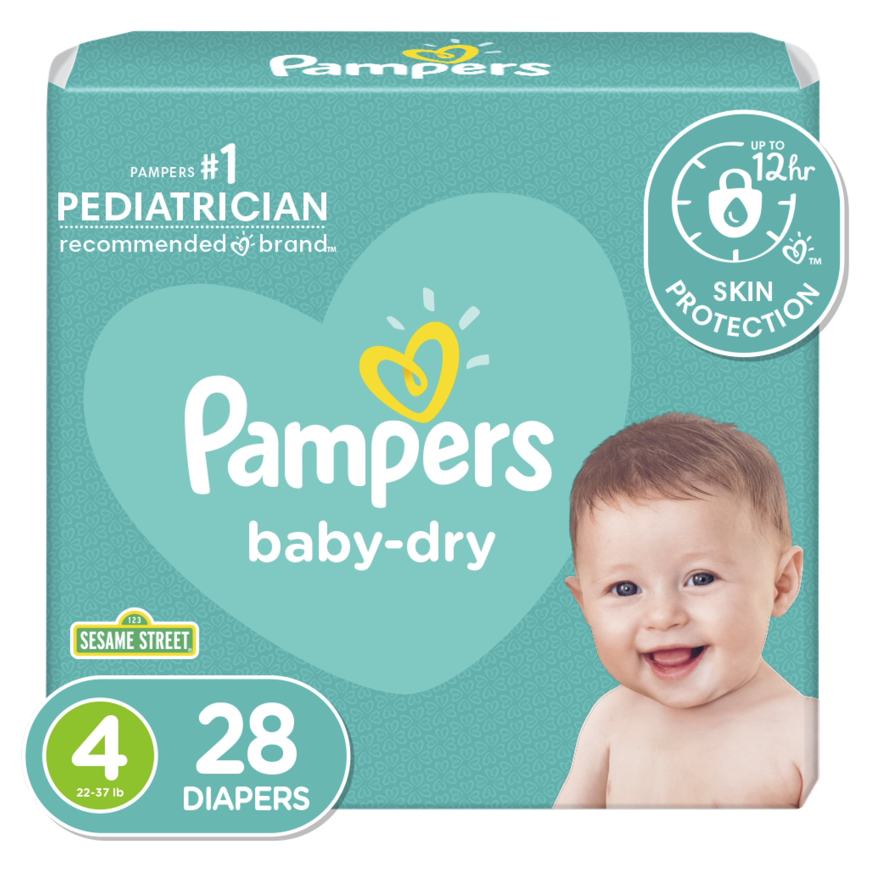 Pampers Baby-Dry Extra Protection Diapers,Size 4,28 CountA good night’s sleep starts with a great diaper,and Pampers Baby-Dry diapers give you and your baby up to 100% leakproof nights and happy mornings.Made to protect your baby’s delicate skin,our exclusive LockAway Channels absorb wetness and lock it safely away,while our protective Dri-Weave Liner helps keep skin healthy.Plus,our Baby-Dry Diapers are hypoallergenic and completely free of parabens and latex.These are just a few of the many reasons Pampers is the 1 pediatrician recommended diaper brand and your baby's best bet for comfy protection