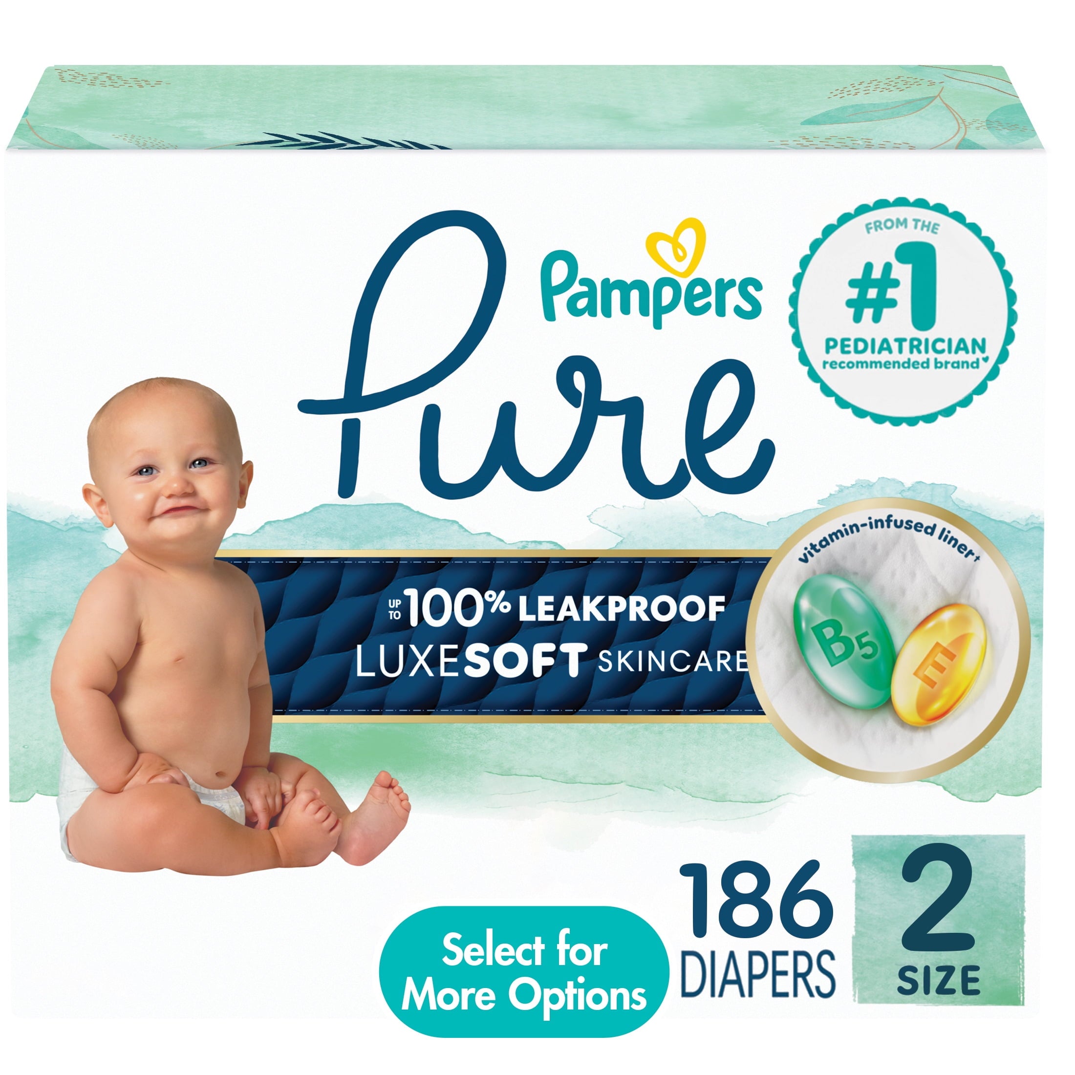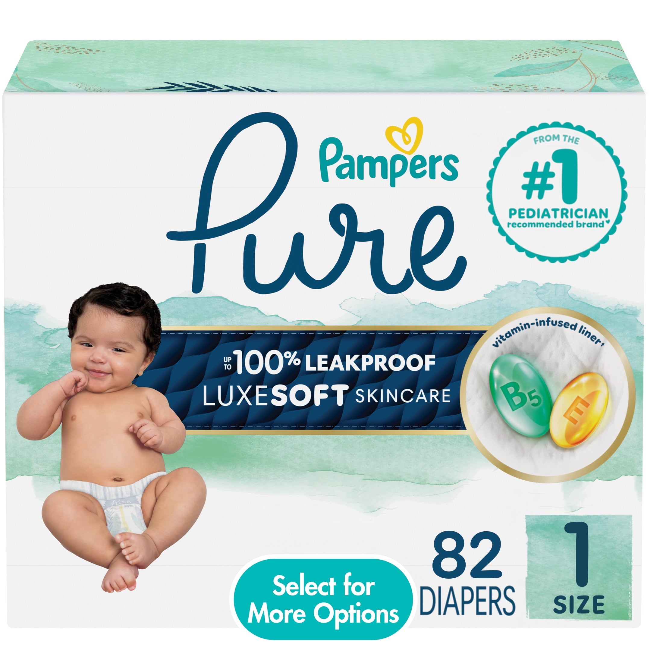 Pampers Pure Baby Diapers Size 5, 48 Count (Select for More Options)