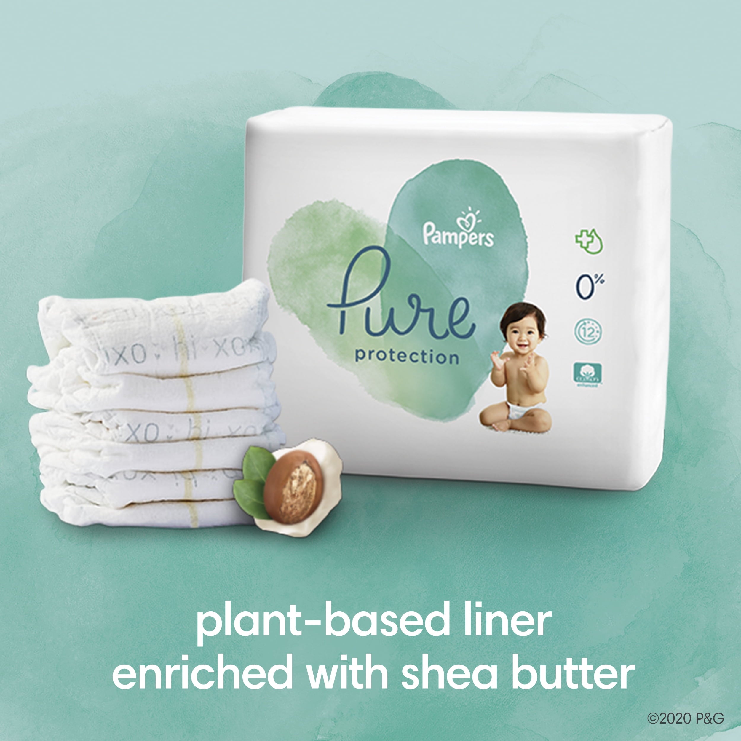 Your search for pure protection that works is over! Designed to help skin stay dry and healthy, Pampers Pure Protection diapers lock wetness away from skin for up to 12 hours for outstanding leakage protection with skin-loving care. Plus, our designer, boutique prints make Pampers Pure just as precious as they are protecting. We've thoughtfully chosen all of our ingredients to care for your baby's precious skin. Our exclusive, plant-based liner** is enriched with shea butter to help nourish and protect skin while our outercover is enhanced with premium cotton, making Pampers Pure Protection diapers irresistibly soft and breathable. But the ingredients we've chosen to leave out are just as important. That's why Pampers Pure Protection diapers are free of chlorine bleaching, fragrance, parabens, and latex* and are hypoallergenic. *Natural rubber **Plant-based and polypropylene blend The Seal of Cotton and cotton enhanced are trademarks of Cotton Incorporated. cotton enhanced soft outercover contains 15% cotton.