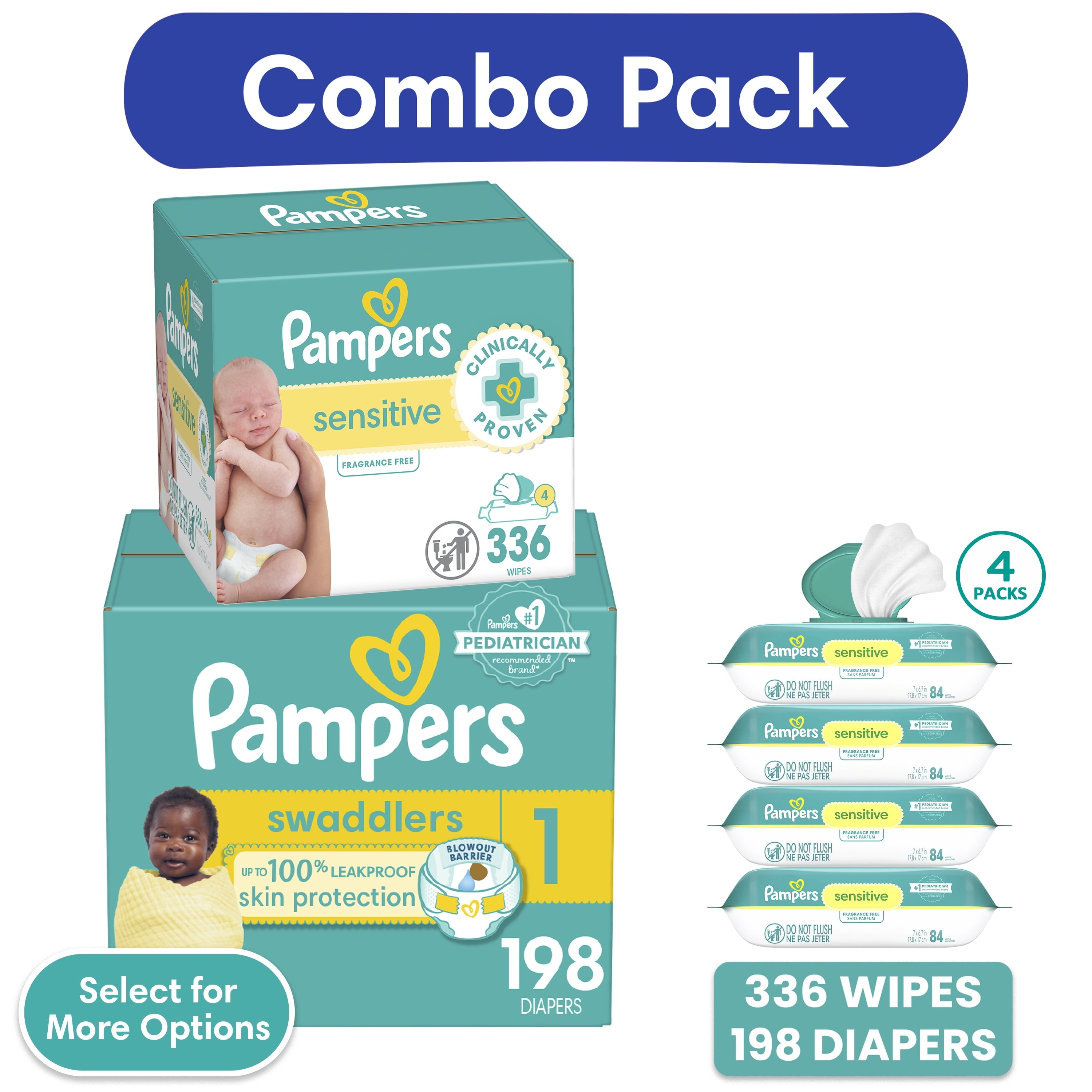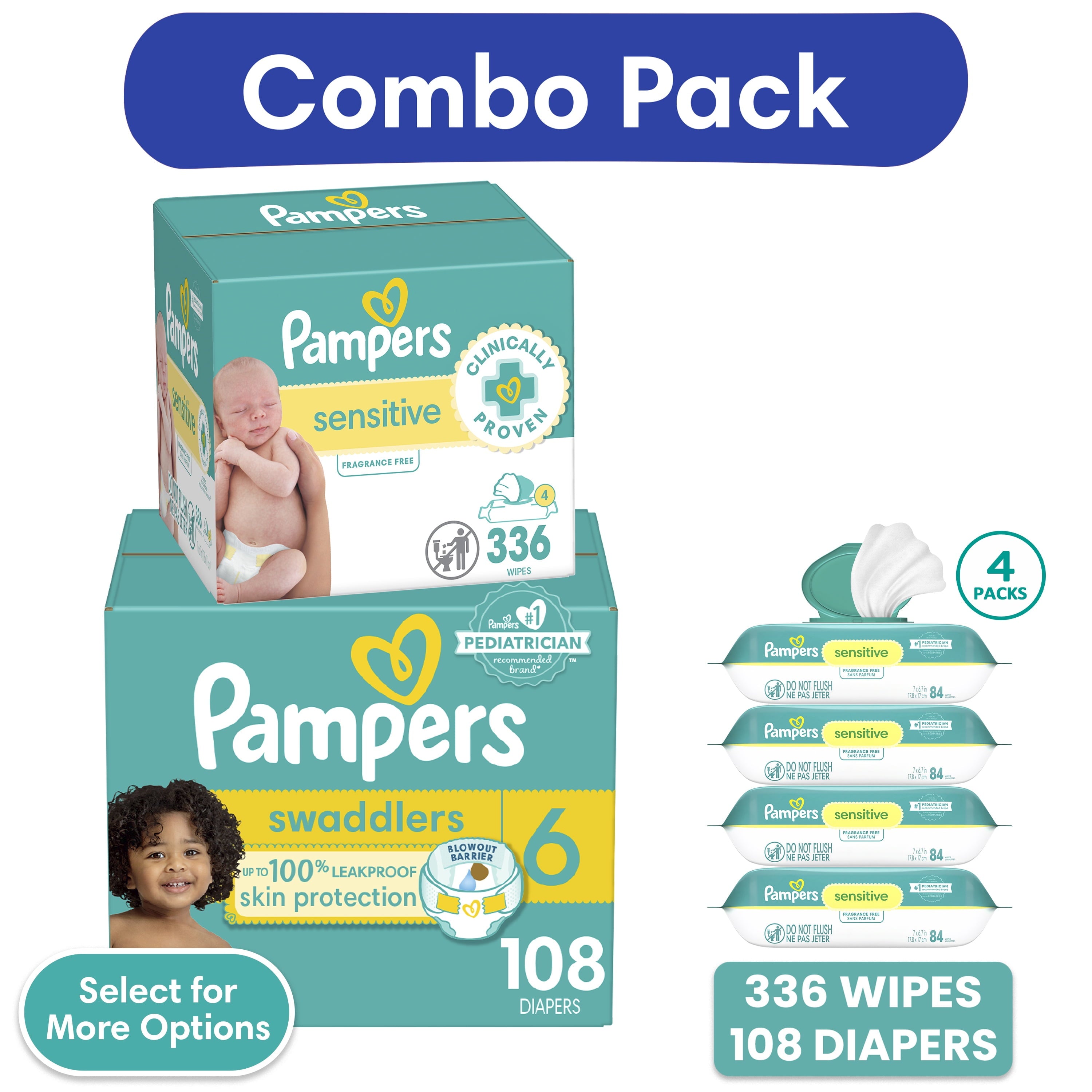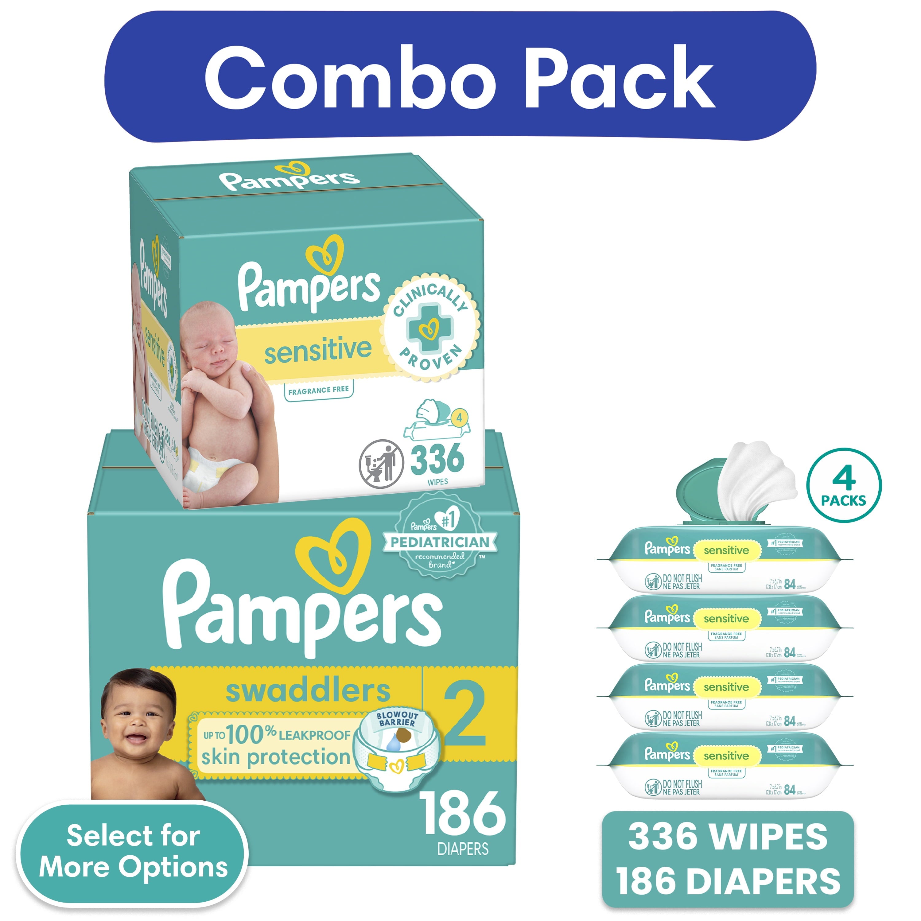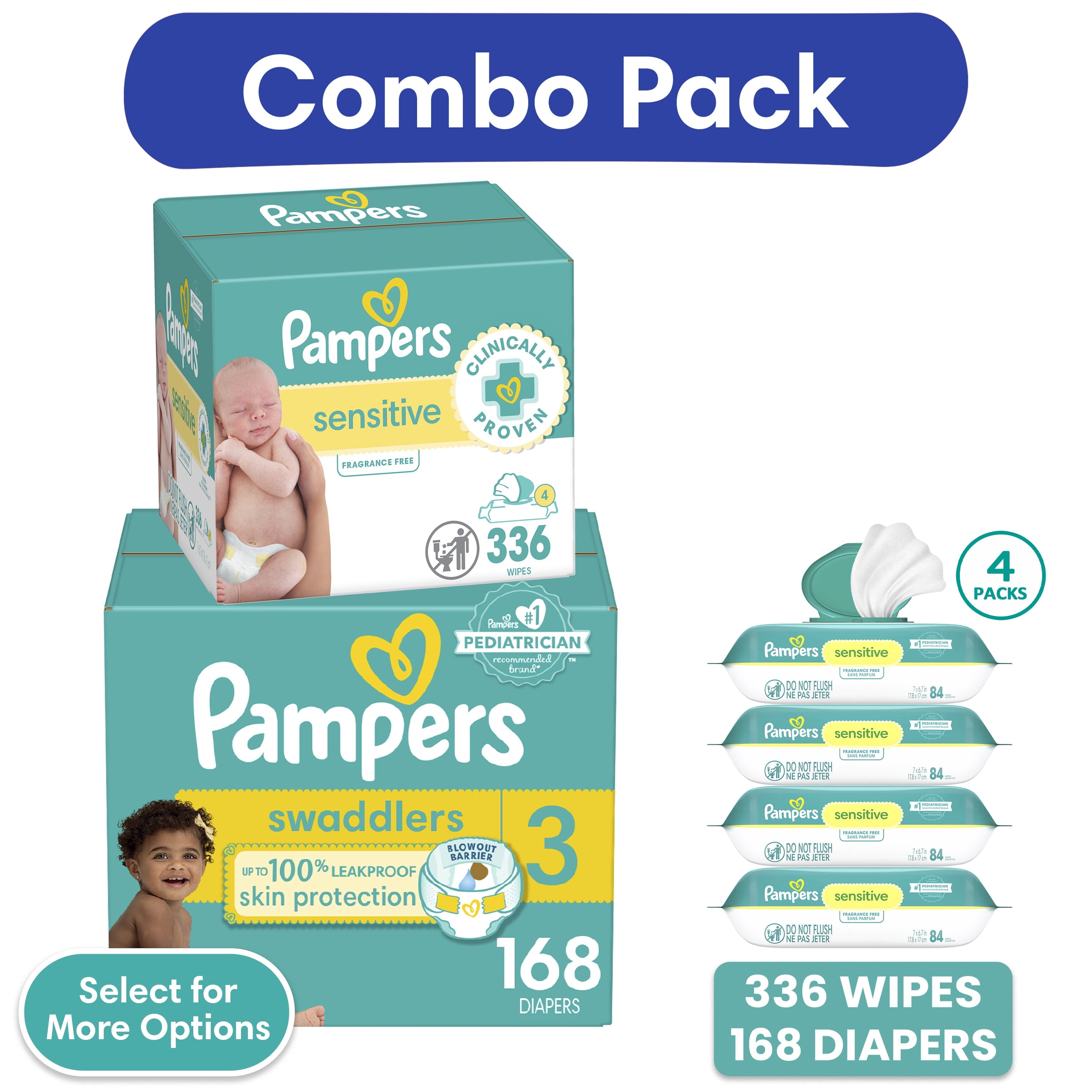 Pampers Swaddlers Diapers, Size 4, 150 Count and Pampers Sensitive Bab