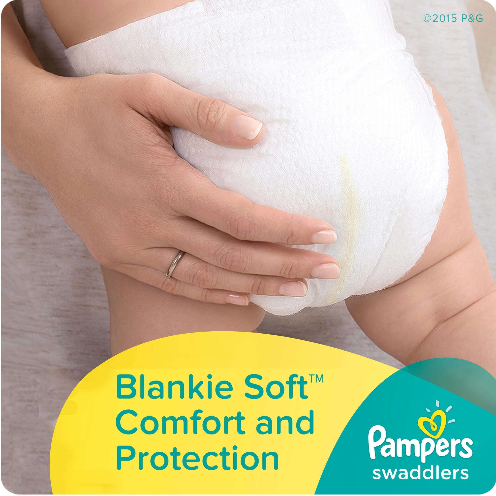 Wrap your baby in our softest comfort with Pampers Swaddlers diapers. Designed to keep skin dry and healthy, Pampers Swaddlers are the only diapers with a BreatheFree Liner that wicks away wetness and mess, allowing your baby's skin to breathe. Specially designed with your baby's comfort in mind, our Soft Flexi-Sides provide a soft cushiony stretch for a secure and comfortable fit. Plus, our Pampers Wetness Indicator lets you know when your baby might need a change, to help keep baby's skin dry and healthy. For protection that's gentle on your baby's skin, Pampers Swaddlers is hypoallergenic and free of parabens and latex.* And when your baby is new to the world, our Umbilical Cord Notch** provides a perfectly contoured fit that protects their delicate belly. That's why Pampers Swaddlers are the #1 Choice of U.S. Hospitals, Nurses and Parents†. For trusted protection, trust Pampers, the #1 U.S. Pediatrician Recommended Brand. *Natural rubber. **Sizes N–2. †Hospitals: based on hospital sales data; nurses: vs. other hospital brands, among those with a preference; parents: based on retail sales.