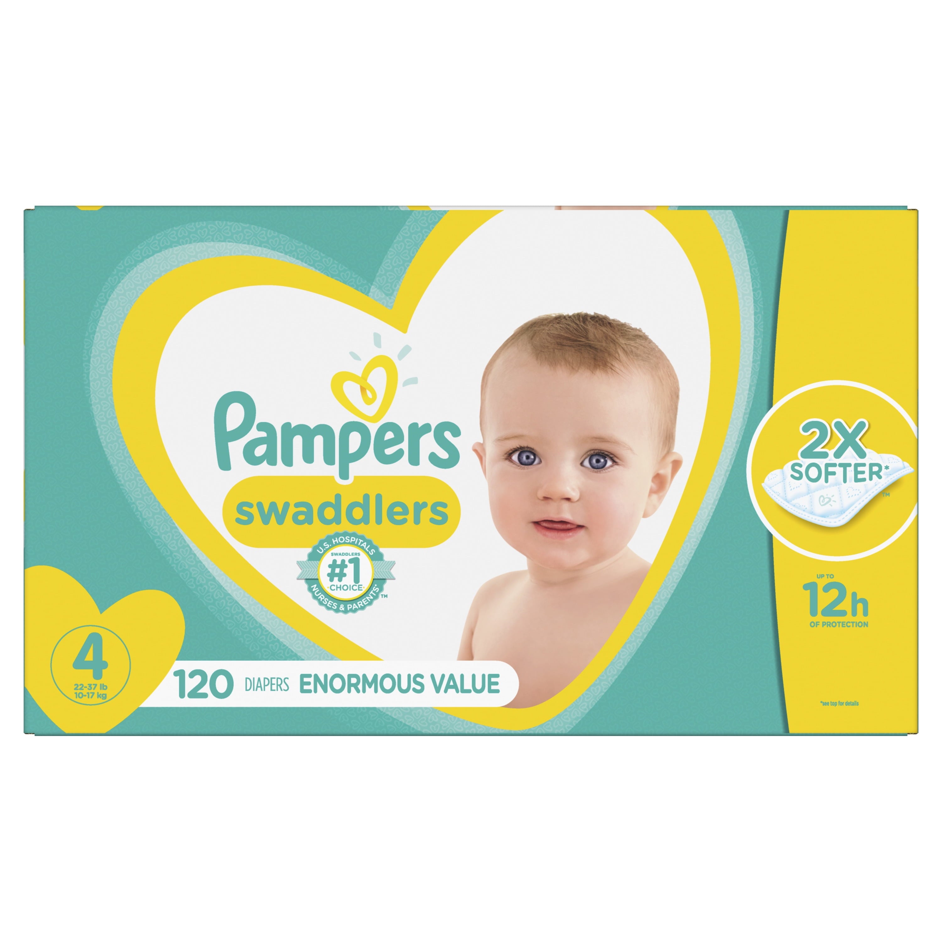 Wrap your baby in a diaper that\'s 2x softer** and the #1 Choice of Hospitals, Nurses and Parents.* Its comforting Heart Quilts liner provides breathability and comfort while pulling wetness and mess away from the skin. In addition, Air Channels help distribute moisture evenly, providing up to 12 hours of protection, while a Wetness Indicator tells you when your baby might need a change. For complete comfort, the outer cover is Blankie Soft with a special Umbilical Cord Notch to protect your newborn baby\'s belly with a perfectly contoured fit (sizes N-2). *Hospitals: based on hospital sales data; nurses: vs. other hospital brands, among those with a preference; parents: based on retail sales. **vs. the every-day-of-the-year brand PAMP SW S4 Enor w/OVRNT WMT FDR 1/120
