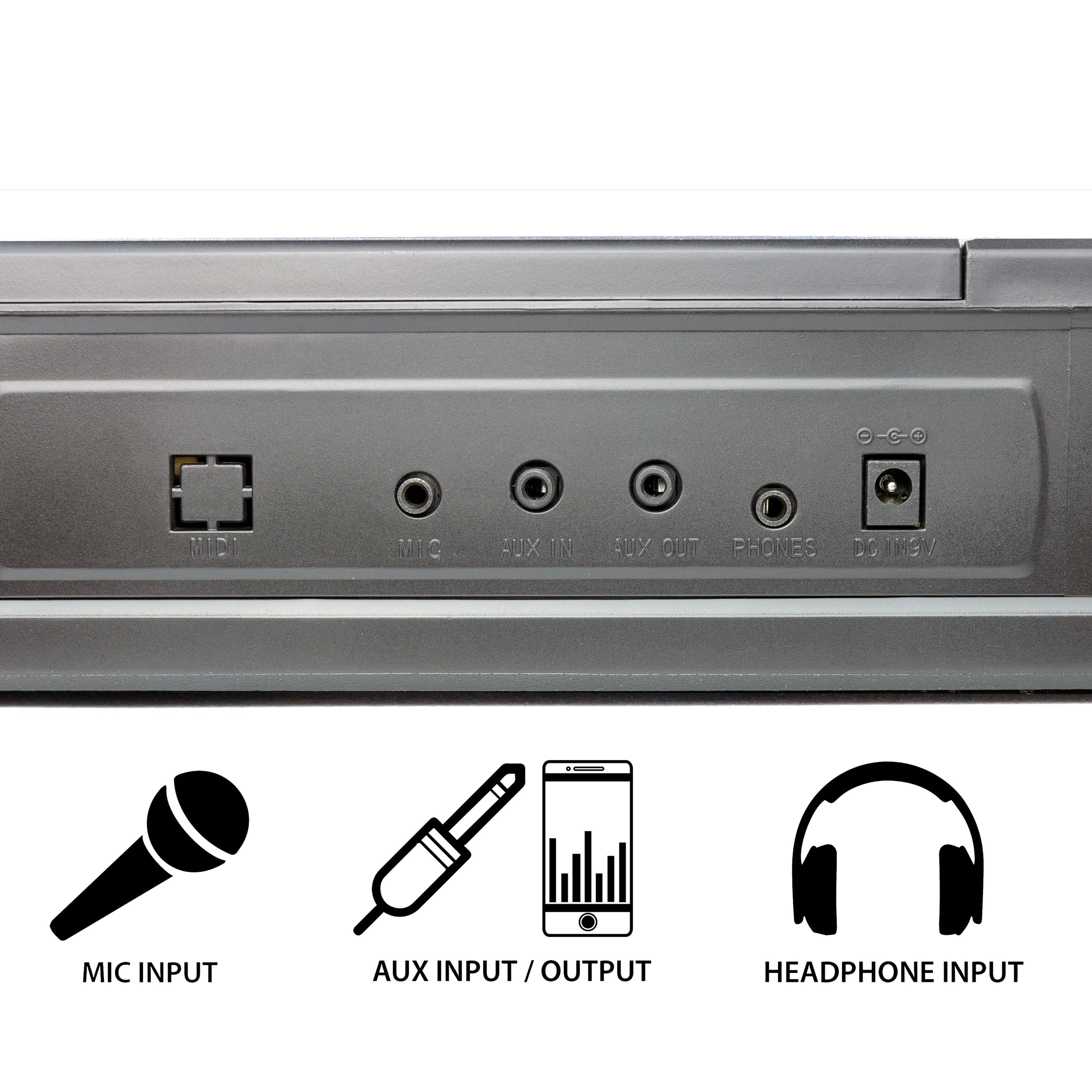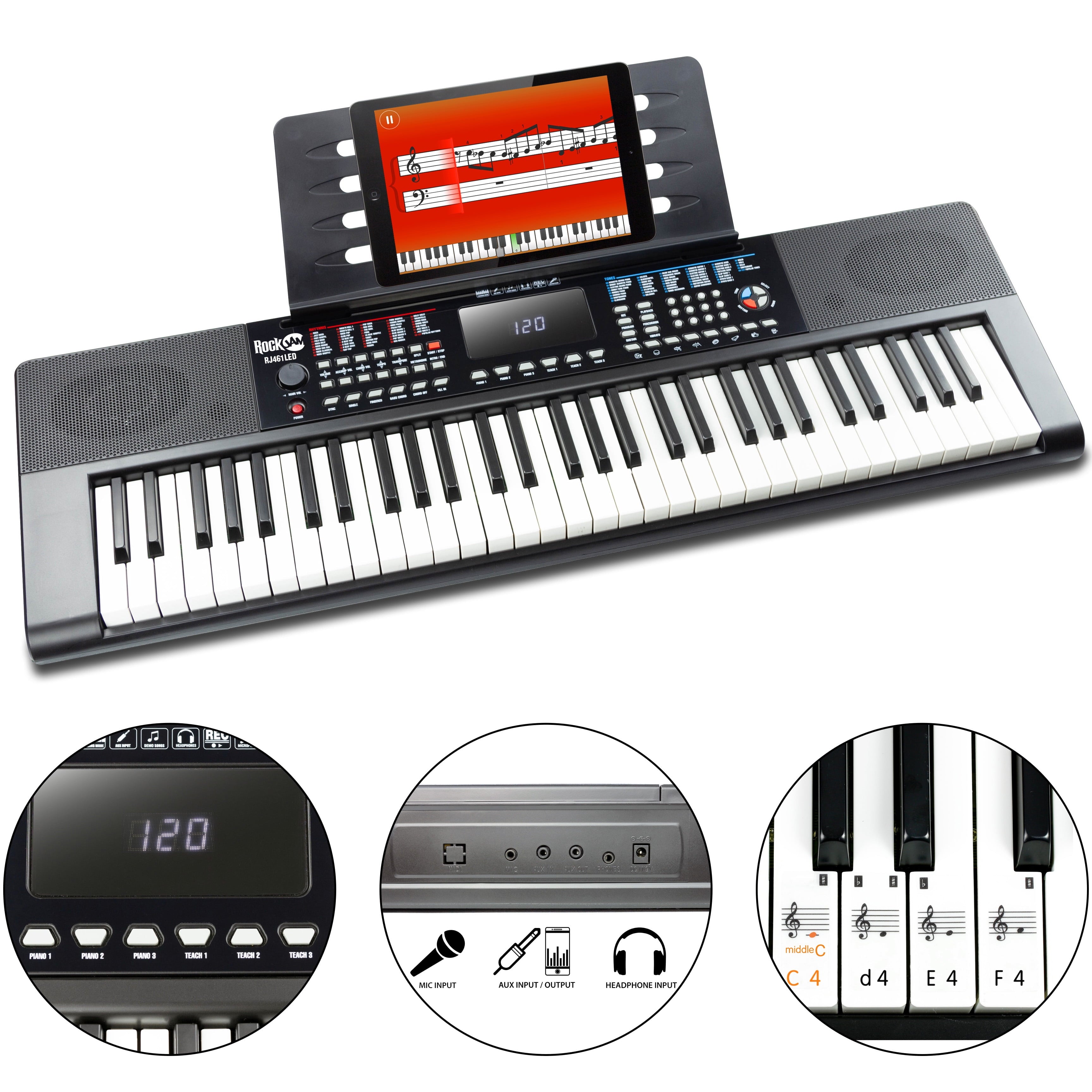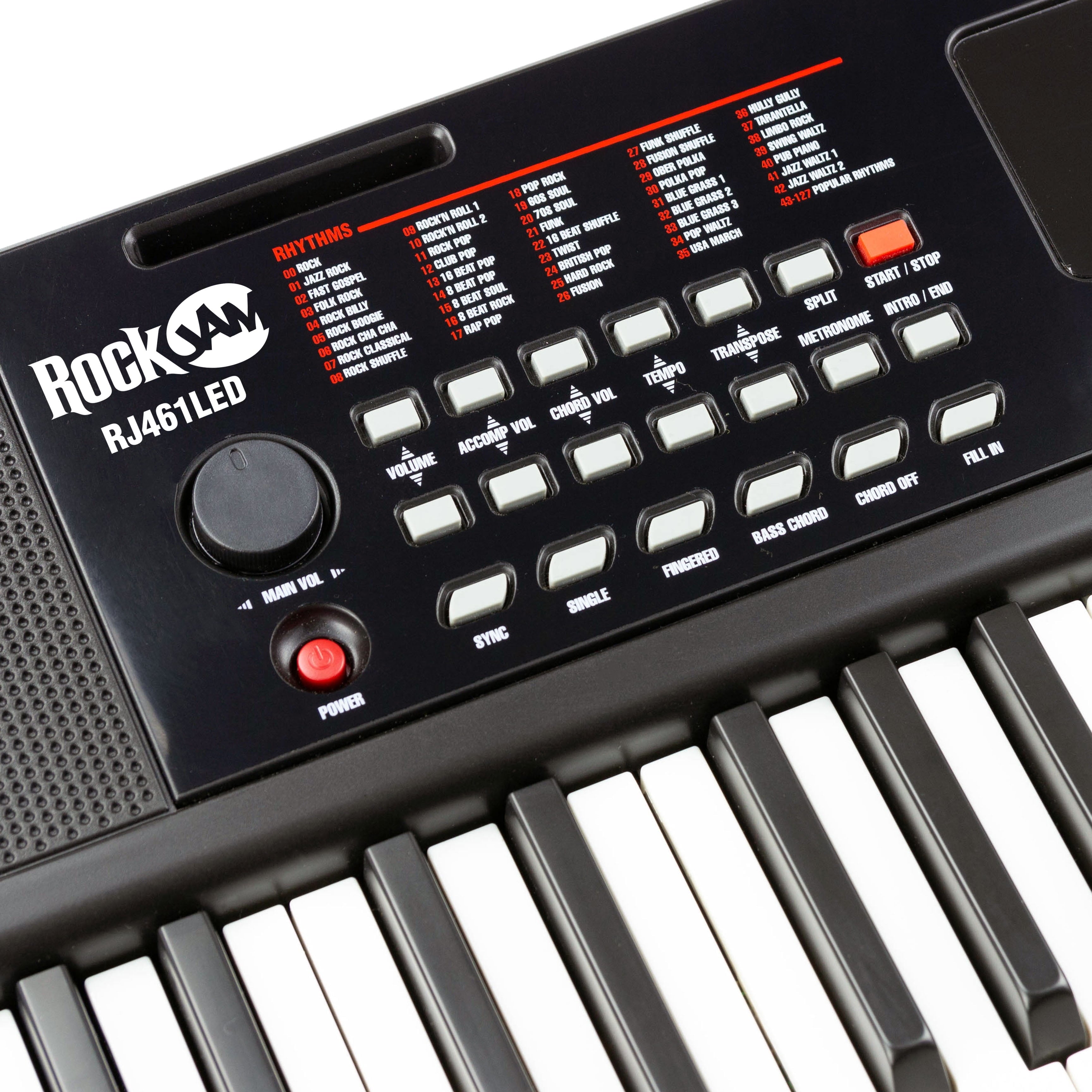 RockJam 461LED 61-Key Keyboard Piano with Keynote Stickers and Simply Piano Lessons The Complete Beginner Electric Keyboard Piano The RockJam 461LED 61-Key Keyboard Piano is the perfect all-in-one solution for beginners, students, and musicians looking for a fun and affordable way to play and create music. Designed to make learning easy and enjoyable, this versatile piano keyboard combines quality, performance, and portability in one complete package. Complete Electric Keyboard Piano Kit This electric keyboard piano comes with everything you need to start playing right away, including keynote stickers, a power supply, sheet music stand, and access to interactive lessons through the Simply Piano app. Whether you’re learning for fun or serious study, this music keyboard delivers a full-featured experience from day one. 61 Responsive Keys with LED Guidance The RockJam 461LED keyboard piano features 61 full-size keys that light up to guide beginners through songs, making it one of the best beginner keyboard pianos available. With hundreds of tones, rhythms, and demo songs, players of all ages can explore endless musical possibilities. Learn Faster with Simply Piano Lessons Included with this electric piano are free lessons from the Simply Piano app. This award-winning platform teaches chords, songs, and playing techniques step-by-step, turning practice into progress for both kids and adults. Portable and Powerful Lightweight yet durable, this electric keyboard is easy to move, store, and set up anywhere. Its built-in speakers deliver clear sound for practice or performance, while the headphone jack allows for quiet play, perfect for home use or travel. Ideal Piano for Kids and Beginners The RockJam 461LED is a great piano for kids, students, and anyone starting their musical journey. Its guided learning features, intuitive design, and educational support make it one of the most complete keyboard music learning systems available. Trusted RockJam Quality With a reputation for durable and affordable instruments, RockJam creates piano keyboards designed to inspire creativity and confidence. Enjoy the satisfaction of learning digital piano, performing, and composing on a reliable instrument built to grow with you.