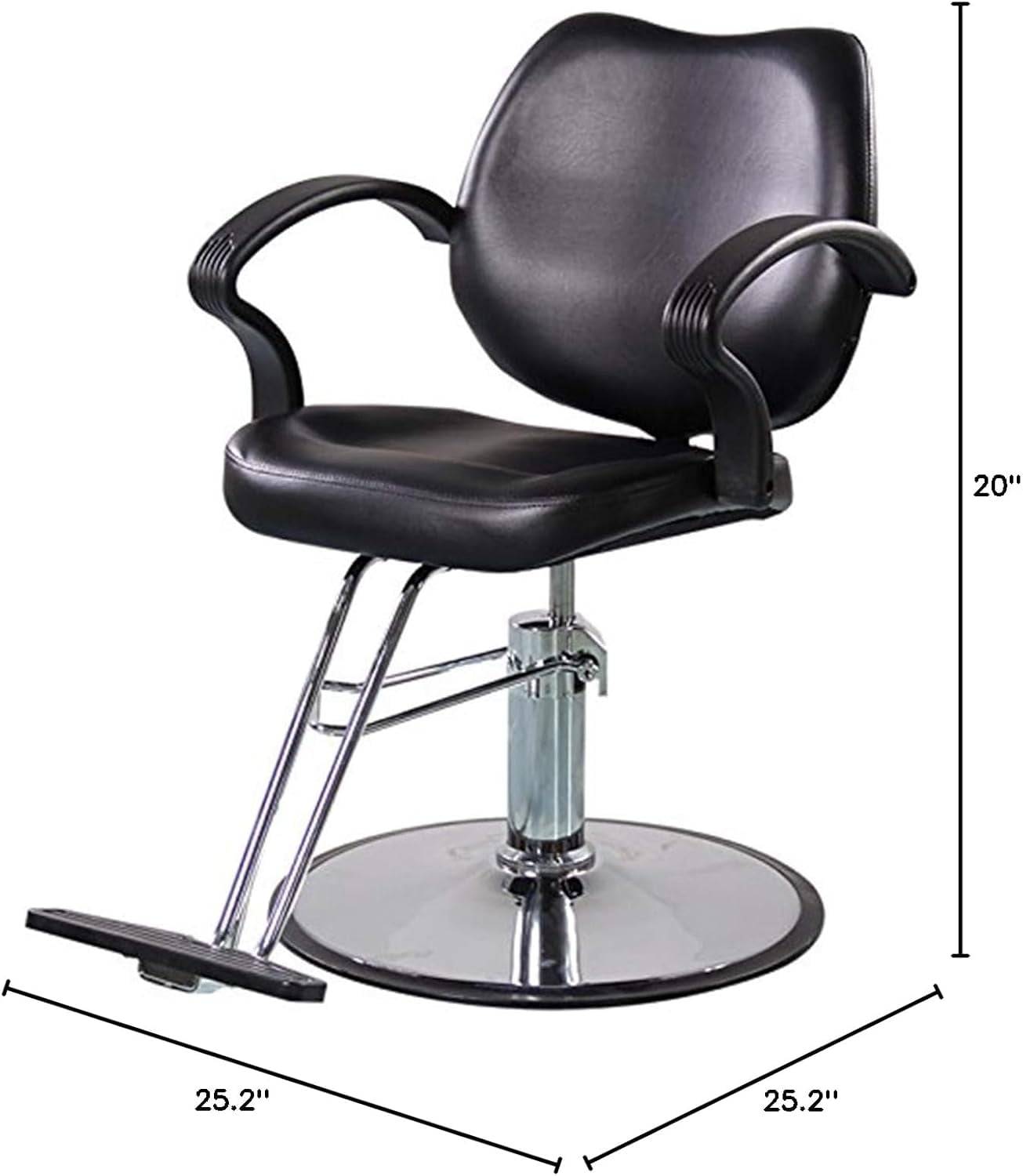 Product Description Specification: Model: Salon Chair. Color: Black Seat width: 19.2". Chair width: 25.2". Min/max seat height: 20"-26". Load capacity: 300lbs. Weight: 68lbs. Warranty: 1 year on hydraulic