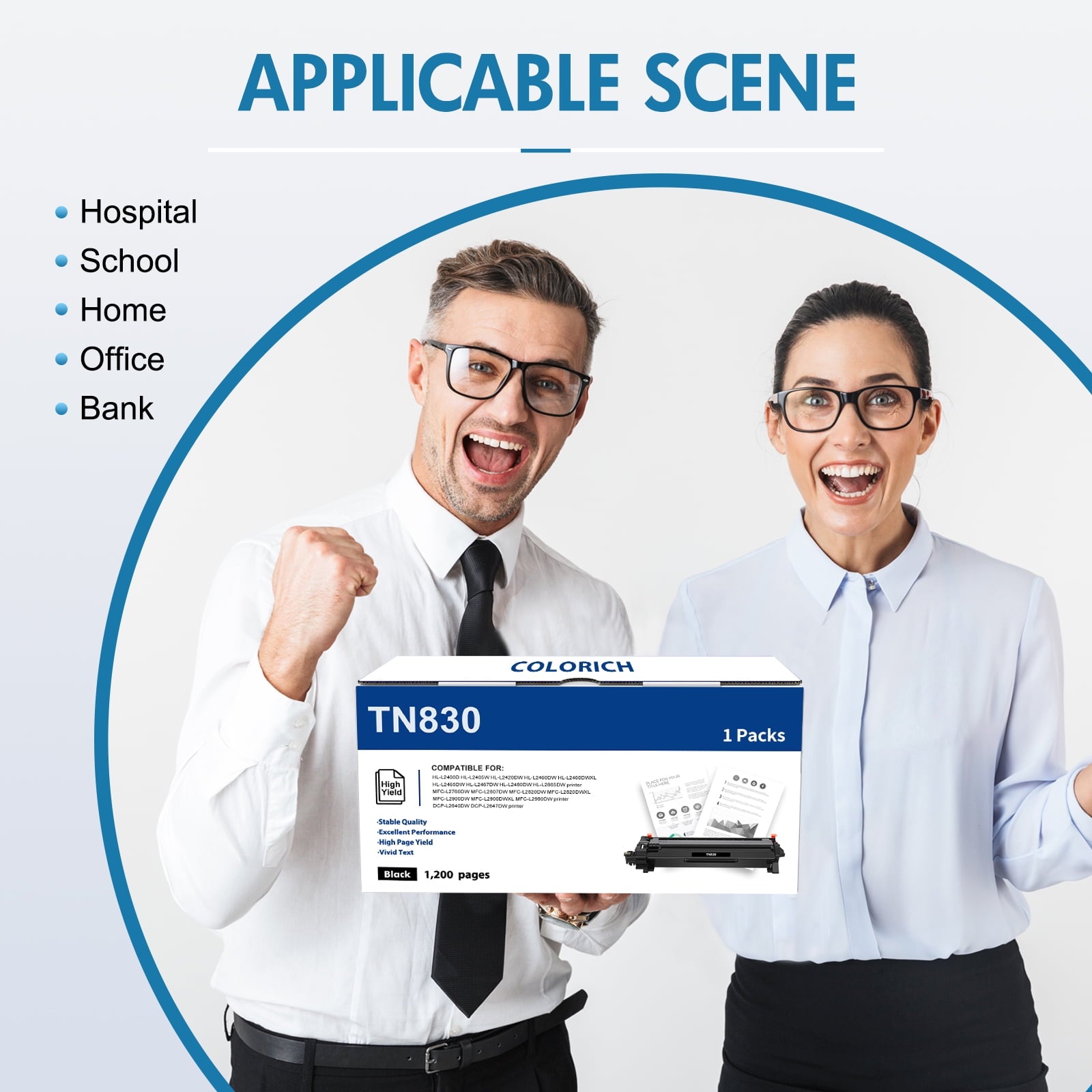 Colorich specializes in high-quality tn830 830 toner cartridges and printing supplies, offering competitive prices with 100% quality assurance. The brand is dedicated to meeting customer needs through continuous product innovation and reliable after-sales support. Colorich aims to be a trusted partner for efficient office solutions. Product Specification: Brand: Colorich Compatible Toner Cartridge Replacement for: Brother TN-830 TN830 TN 830 Printer Ink Cartridges Compatible Toner Cartridge Replacement for Printer: Brother DCP-L2640DW, DCP-L2647DW, HL-L2400D, HL-L2405W, HL-L2420DW, HL-L2460DW, HL-L2460DWXL, HL-L2465DW, HL-L2467DW, HL-L2480DW, HL-L2865DW Laser Printer, MFC-L2760DW, MFC-L2807DW, MFC-L2820DW, MFC-L2820DWXL, MFC-L2900DW, MFC-L2900DWXL, MFC-L2980DW Laser Printer Pack of Items: 2-Pack TN830 TN830 TN-830 Black Toner High Yield for DCP-L2640DW MFC-L2820DW XL HL-L2405W HL-L2400D HL-L2460DW HL-L2465DW Printer Ink Color: 2 * Black TN830 TN830 Toner Compatible for Brother TN830 Toner TN830 TN-830 or TN830XL Black High Yield TN830XL Toner for Printer Page Yield (based upon a 5% coverage of A4 paper): TN-830 TN830 Compatible for Brother Toner Cartridge Can Print Approximately 1,200 Pages Package Including: 2-Pack TN830 TN830 TN830/XL/V/R Black Toner Cartridge Replacement for Brother TN830 Toner TN-830 TN 830 TN830 Toner Compatible for Brother Printer