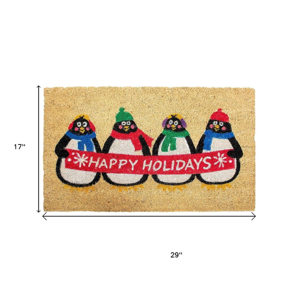 Keywords holidays outdoor coir door mat, outdoor coir door mat, coir door mat, 17" X 29" brown white red christmas, happy holidays outdoor coir door