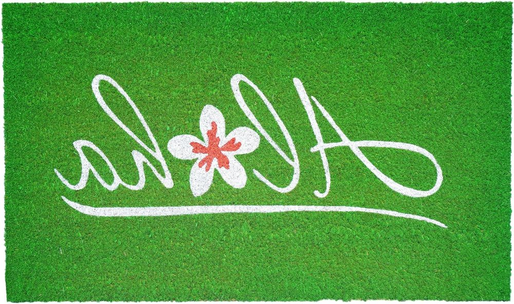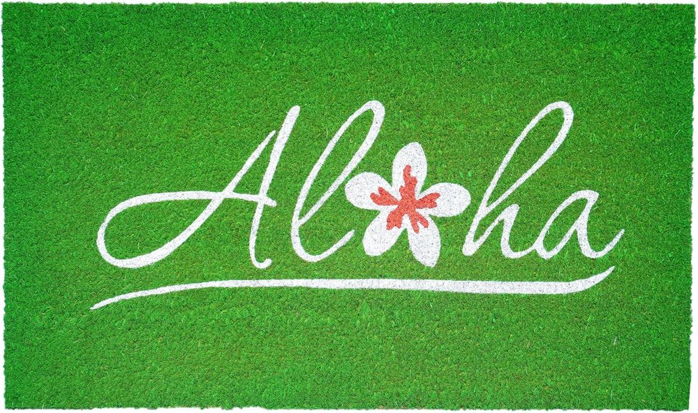 Known for it's extreme durability and ability to withstand heavy foot traffic, this 17-inch x 29-inch green and white aloha outdoor coir door mat is an ideal option for the front door or entrance way of your home or business. Crafted from coconut husks, this mat is not only functional but is an an eco-friendly and visually appealing accessory. The naturally bristled texture of coir is an efficient way to clean dirt and mud from shoes and is easy to clean and maintain. Add this decorative mat to create a practical yet inviting welcome to all who enter. 17-inch h x 29-inch w x 0.6-inch d.
