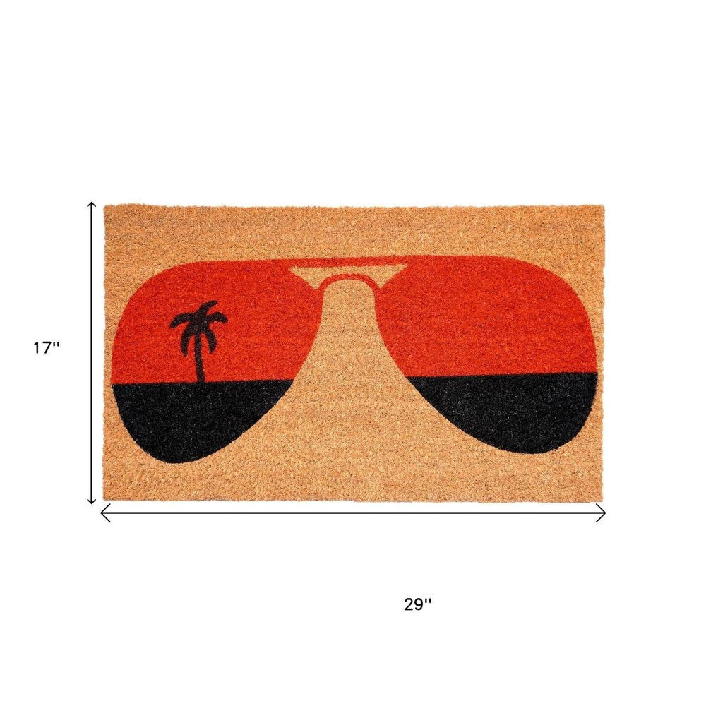 17" X 29" Natural And Red Summer Tropical Outdoor Coir Door Mat