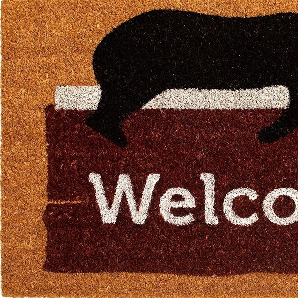 Known for it's extreme durability and ability to withstand heavy foot traffic, this 17-inch x 29-inch natural black and brown bear welcome outdoor coir door mat is an ideal option for the front door or entrance way of your home or business. Crafted from coconut husks, this mat is not only functional but is an an eco-friendly and visually appealing accessory. The naturally bristled texture of coir is an efficient way to clean dirt and mud from shoes and is easy to clean and maintain. Add this decorative mat to create a practical yet inviting welcome to all who enter. 17-inch h x 29-inch w x 0.6-inch d.