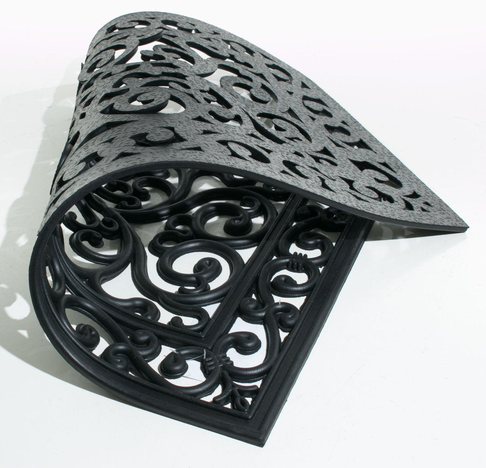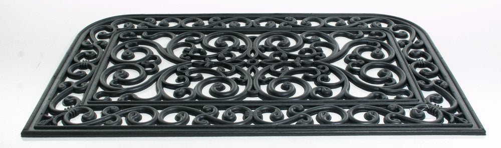 Ready to withstand heavy foot traffic, this 18-inch x 30-inch black rubber outdoor door mat is an ideal option for the front door or entrance way of your home or business. Crafted from rubber, this mat is not only functional but is a visually appealing accessory to welcome people to your home or business. Add this decorative mat to create a practical yet inviting welcome to all who enter. 18-inch H x 30-inch W x 0.5-inch D
