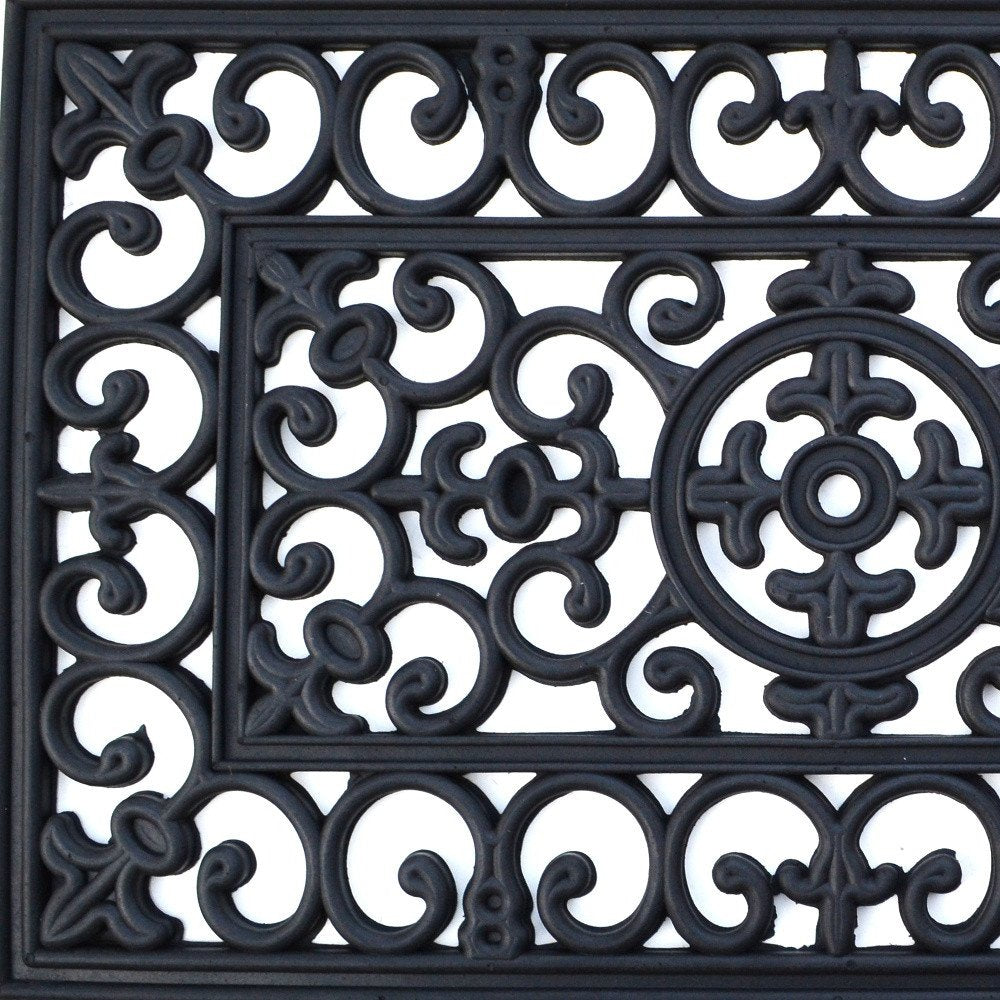 Ready to withstand heavy foot traffic, this 18-inch x 30-inch black rubber outdoor door mat is an ideal option for the front door or entrance way of your home or business. Crafted from rubber, this mat is not only functional but is a visually appealing accessory to welcome people to your home or business. Add this decorative mat to create a practical yet inviting welcome to all who enter. 18-inch H x 30-inch W x 0.5-inch D