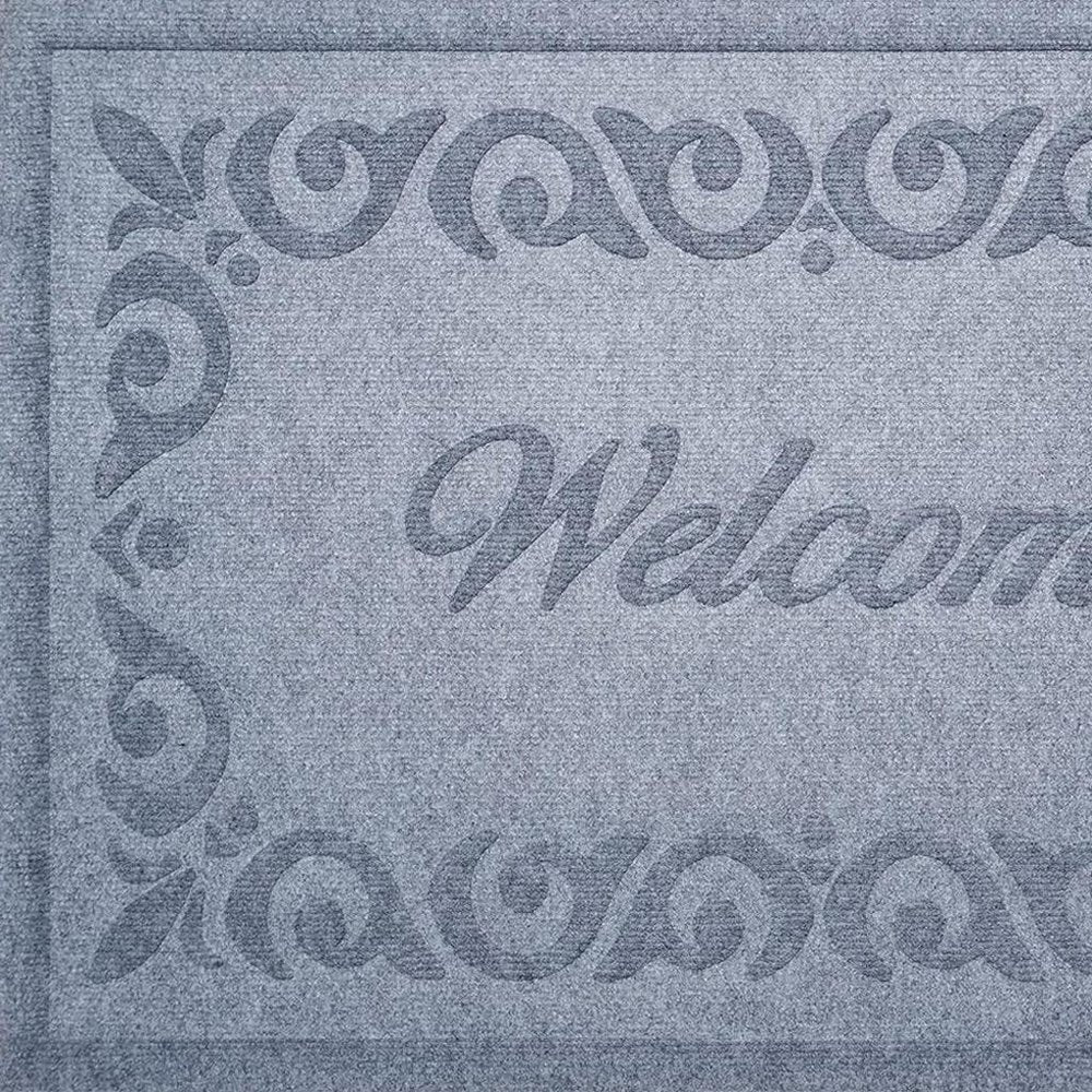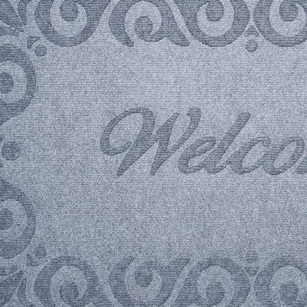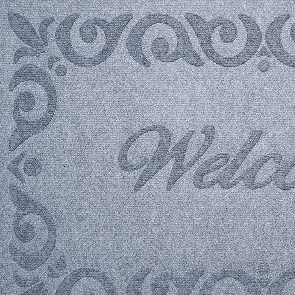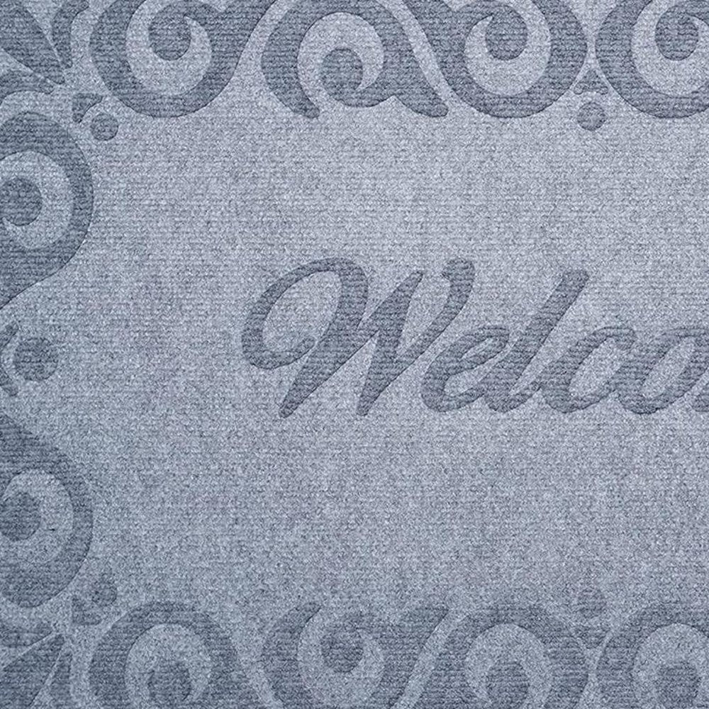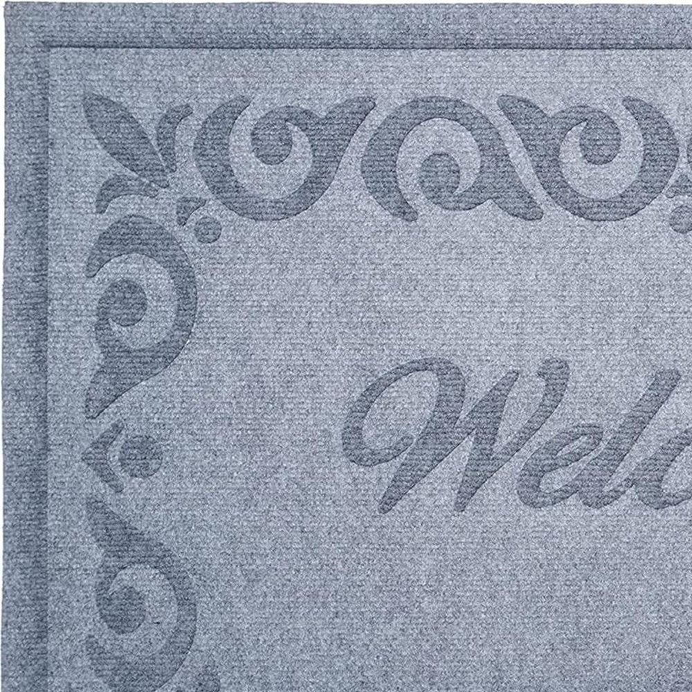 Ready to withstand heavy foot traffic, this 18-inch x 30-inch gray scrollwork border welcome outdoor polypropylene door mat is an ideal option for the front door or entrance way of your home or business. Crafted from polypropylene with a tone-on-tone scrollwork border and the word "welcome", this mat is not only functional but is a visually appealing accessory to greet guests to your home or business. Add this decorative mat to create a practical yet inviting welcome to all who enter. 18-inch h x 30-inch w x 0.2-inch d.