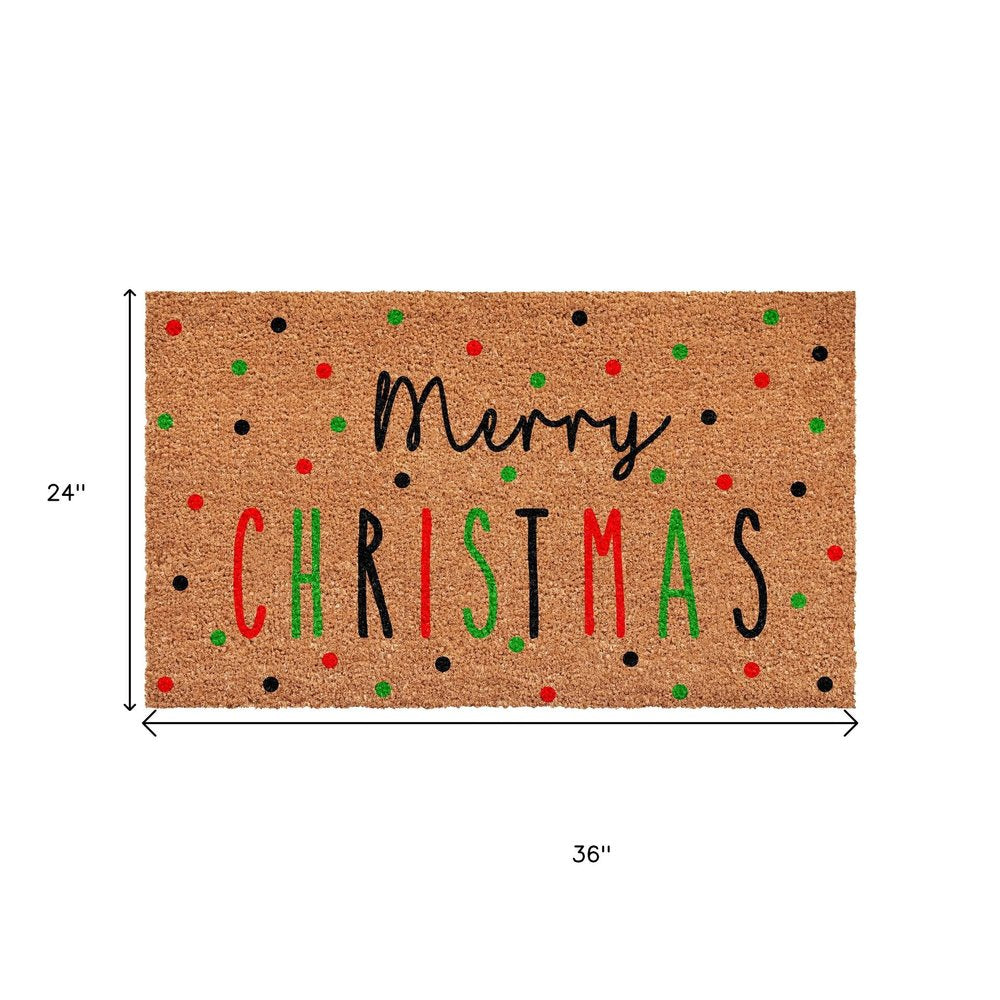 24" X 36" Brown Black And Green Merry Christmas Outdoor Coir Door Mat