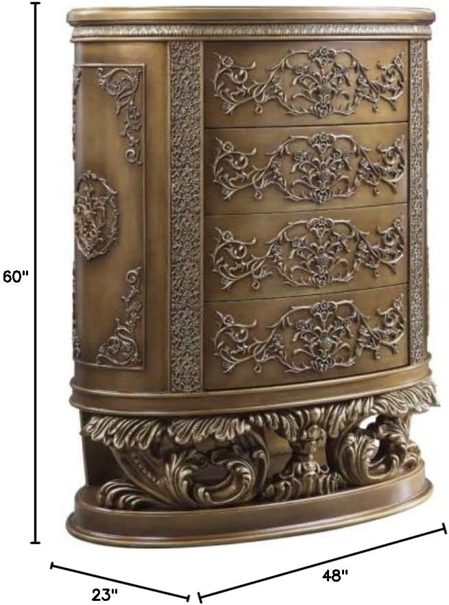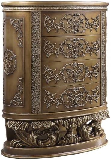 With a beautiful gold finish to emphasize the scrollwork and regal aspects of this product. The chest provide style and plenty of storage with their ample drawers. Transform your bedroom into a glamorous boudoir with this product. If you need a chest, it will be the best choice.