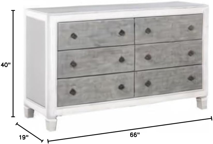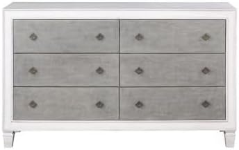 The Katia Dresser is perfect for creating a modern rustic or farmhouse aesthetic. Merging old and new design features and finishes. The dresser features six drawers with safety stops. The case goods fronts are finished in a rustic gray and offer plenty of storage with their ample drawers to fit all your belongings and keep your bedroom organized.