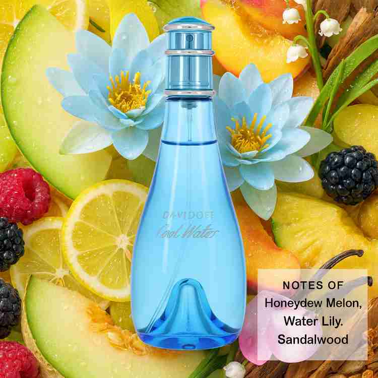 Cool Water perfume by Davidoff is a refreshing, aromatic aquatic fragrance for women released in 1996. This feminine design contains a burst of vibrant fruits and florals mixed with green notes, providing a noteworthy companion to Davidoff's successful Cool Water for men from the previous decade. This women's perfume is the companion of Davidoff's Cool Water Cologne.