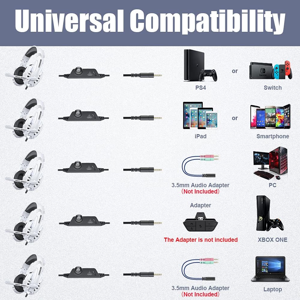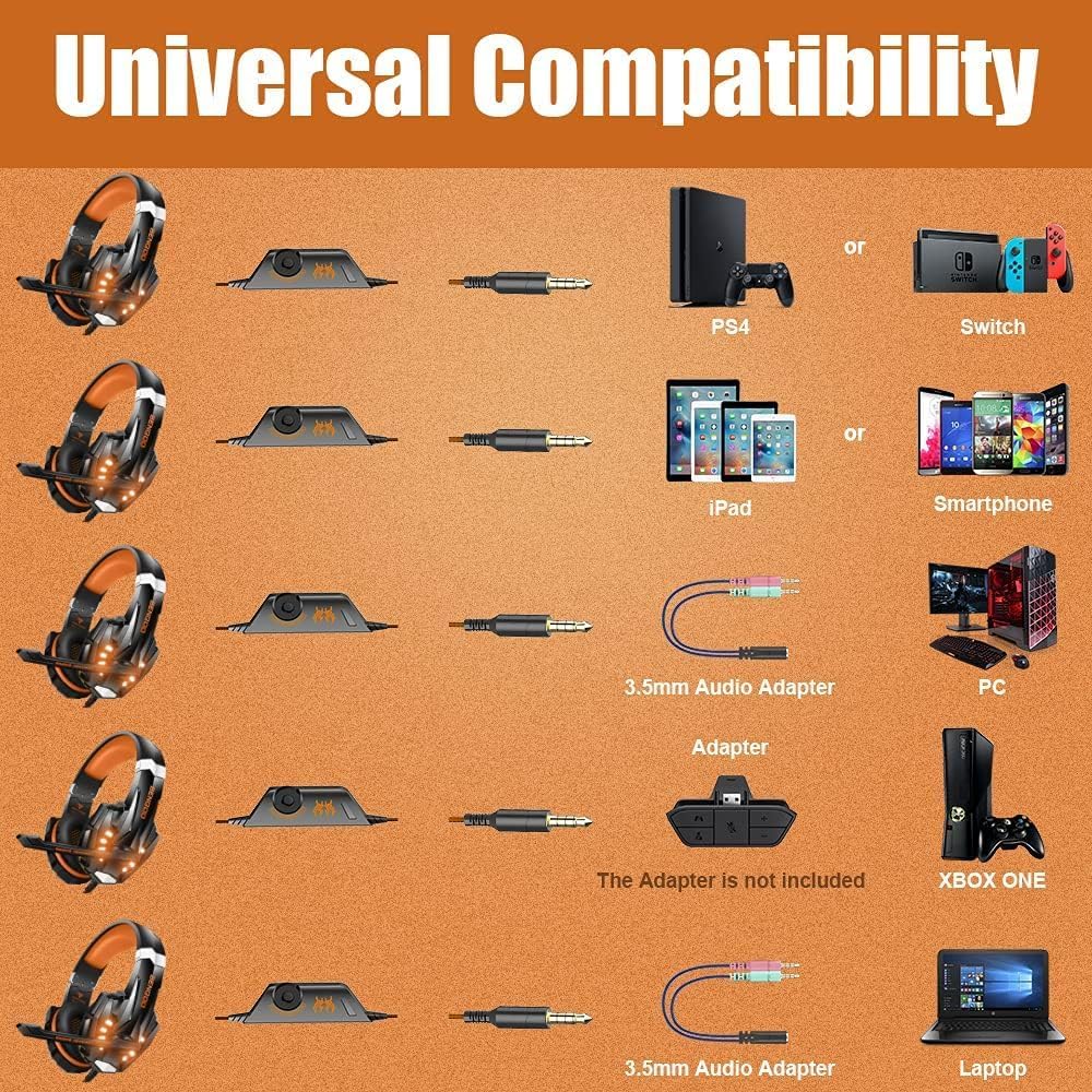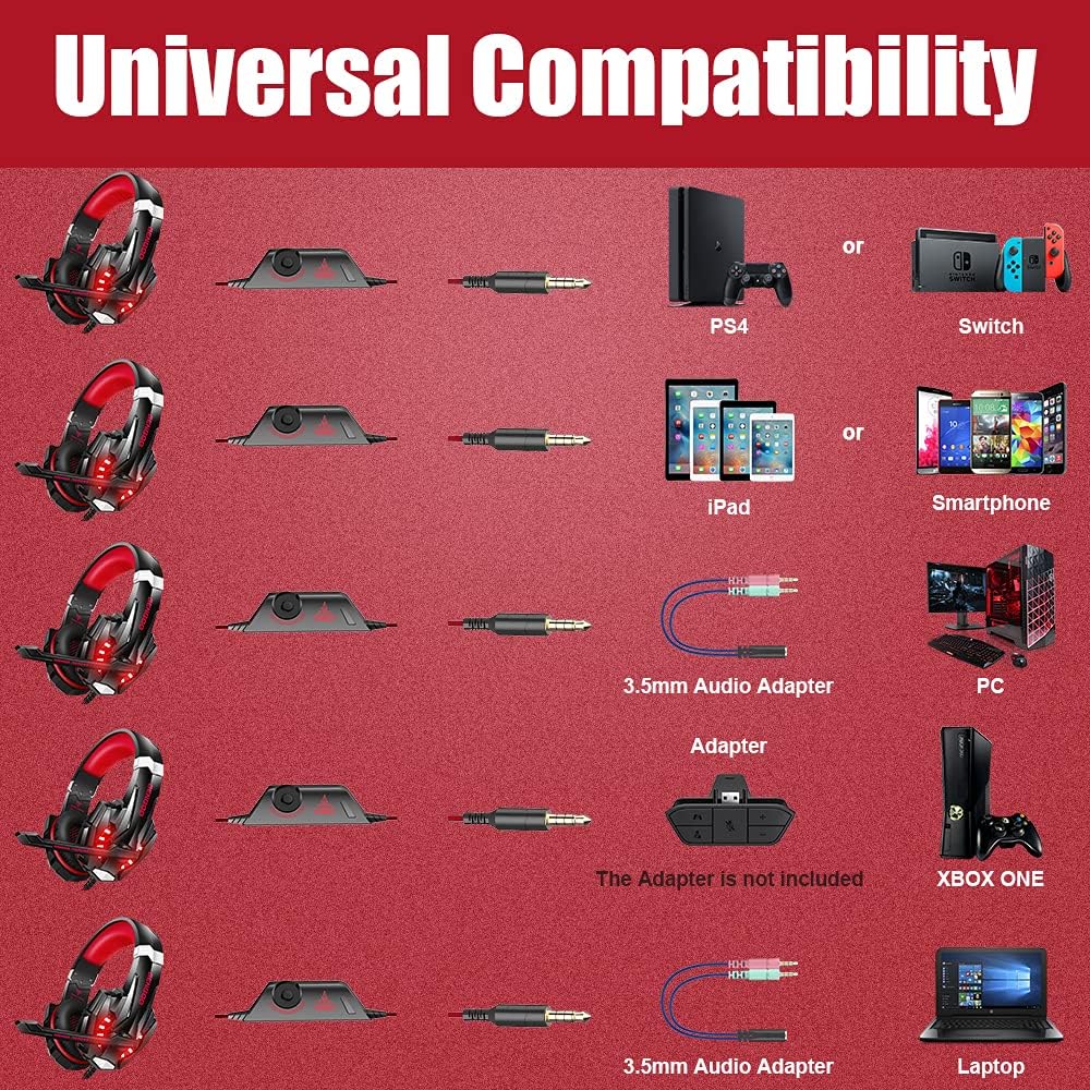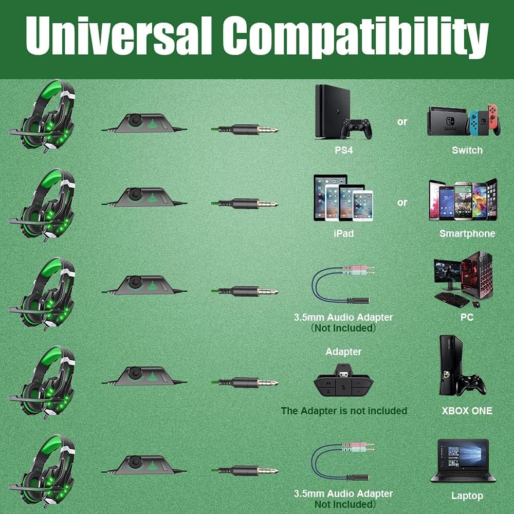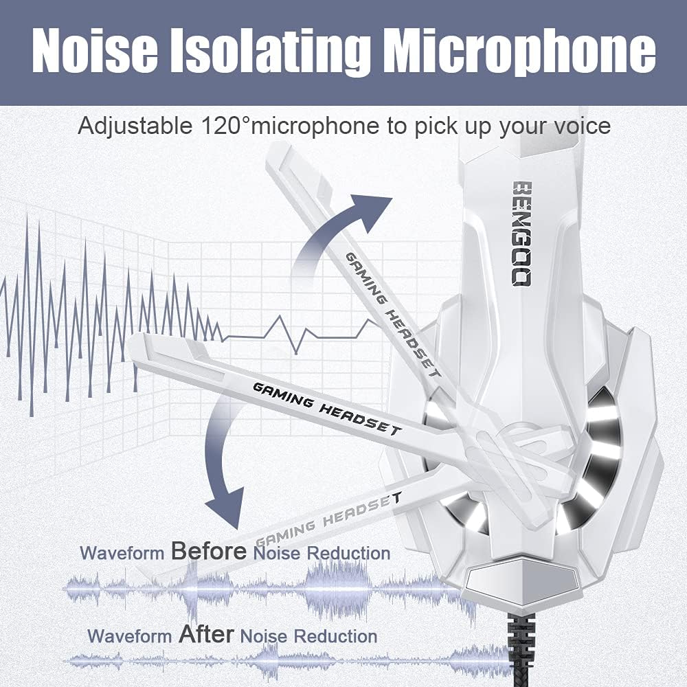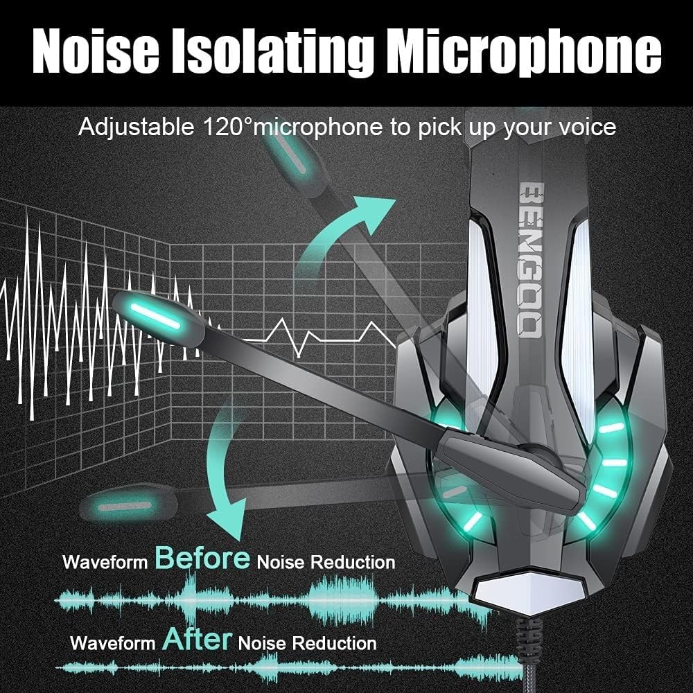 BENGOO G9000 Stereo Gaming Headset for PS4 PC Xbox One PS5 Controller, Noise Cancelling Over Ear Headphones with Mic, LED Light, 7.1 Surround Sound, Soft Memory Earmuffs for Nintendo Xbox Series X|S