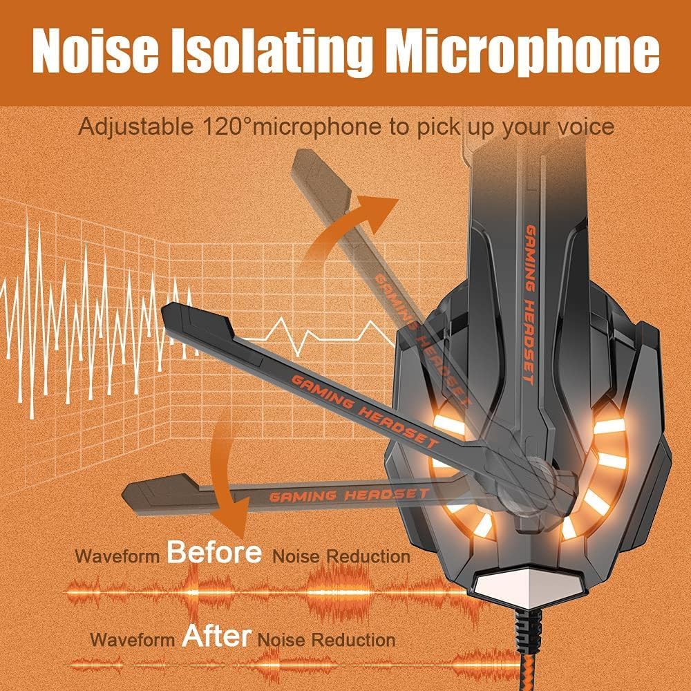 【Noise Isolating Microphone】Headset integrated onmi-directional microphone can transmits high quality communication with its premium noise-concellng feature, can pick up sounds with great sensitivity and remove the noise, which enables you clearly deliver or receive messages while you are in a game. Long flexible mic design very convenient to adjust angle of the microphone.