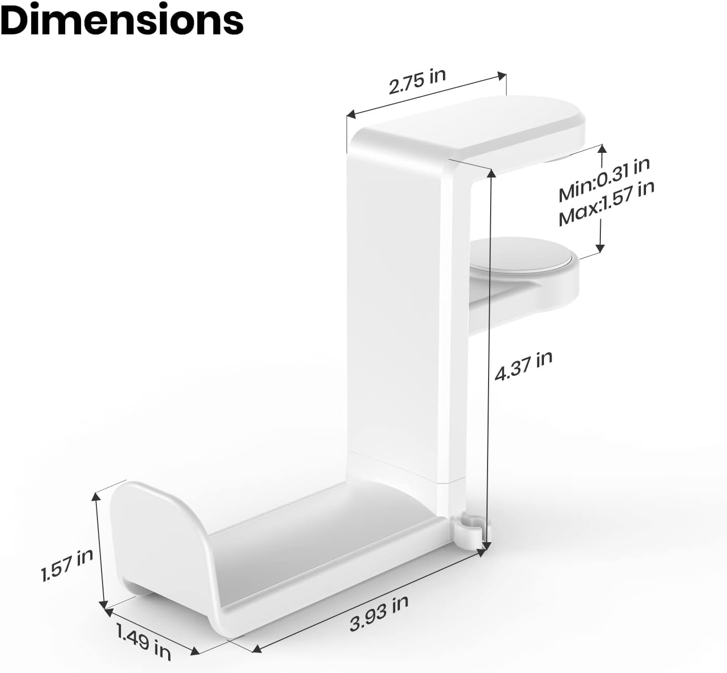 • 【Clamp-on Headphone Stand】The E-Hold Series headphone holder fits desks from 0.31 inch to 1.57 inch thick, making it a versatile choice for most setups. The spring clamp is a breeze to remove and reattach. No glue, no mess. It blends seamlessly into your space, whether it's your desk, shelf, or other surface.