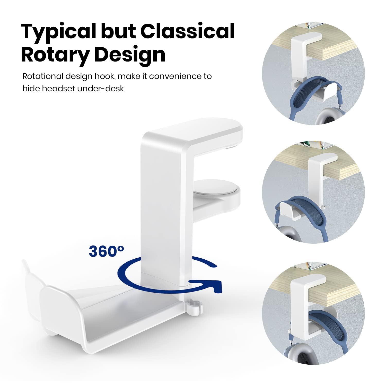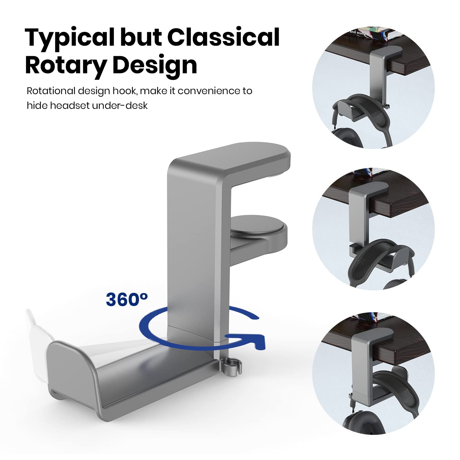 • 【Rotating Adjustable Headphone Arm】Experience effortless access to your headphones with 360-degree swivel design. The gaming headset stand makes it easy to get your desired directions, even tucking them neatly under your desk when not in use.