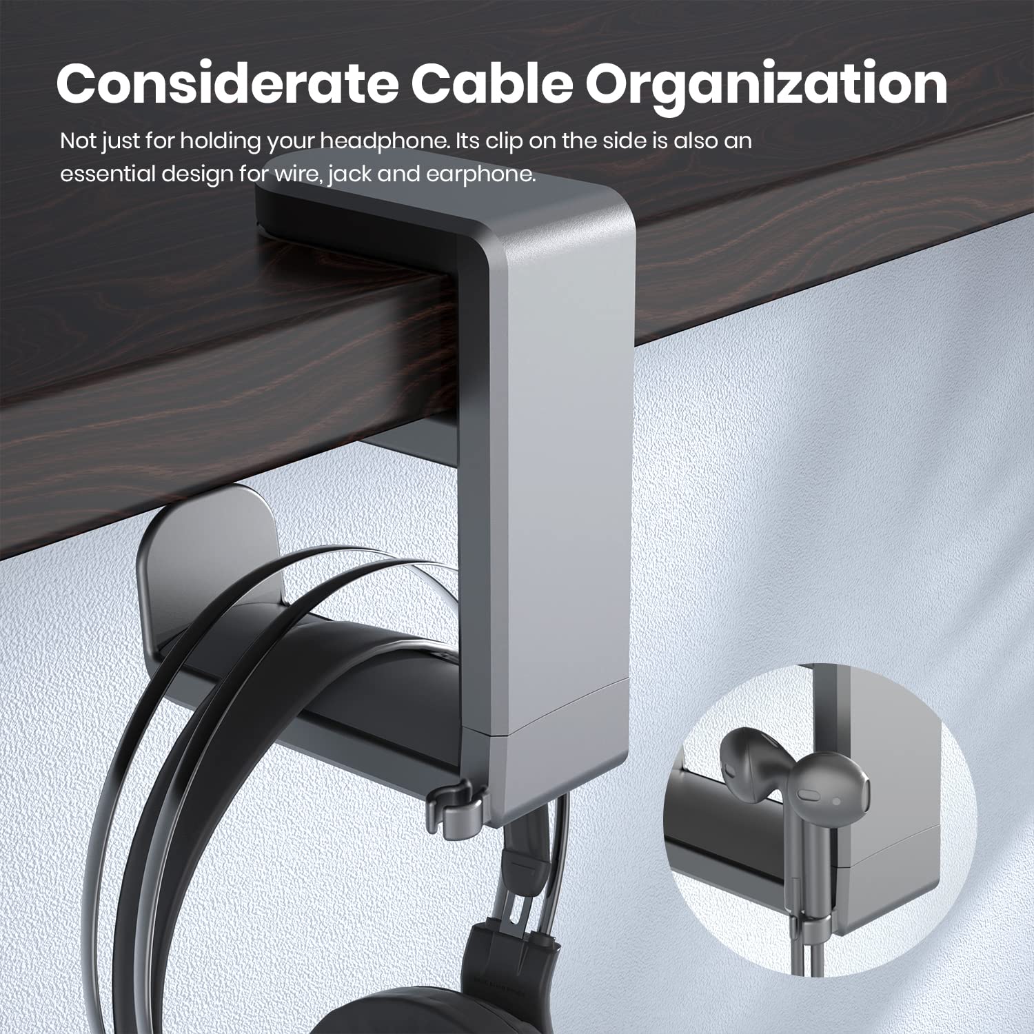 • 【Built in Cable Organizer】The headphone hanger features cable clip to hold your headset's cable in place. It's the perfect desk accessory to ensure your gaming setup and office desk remain tidy and organized.