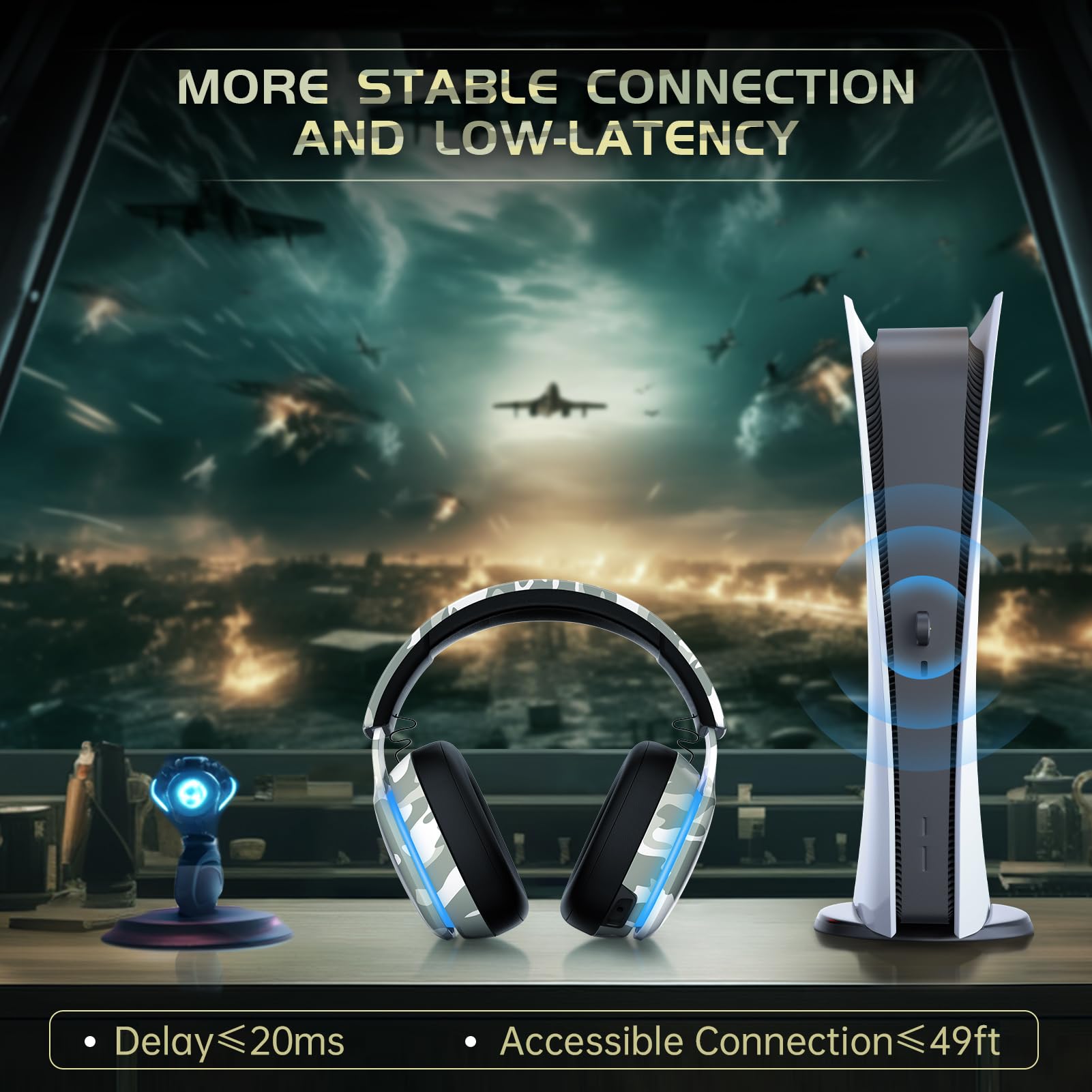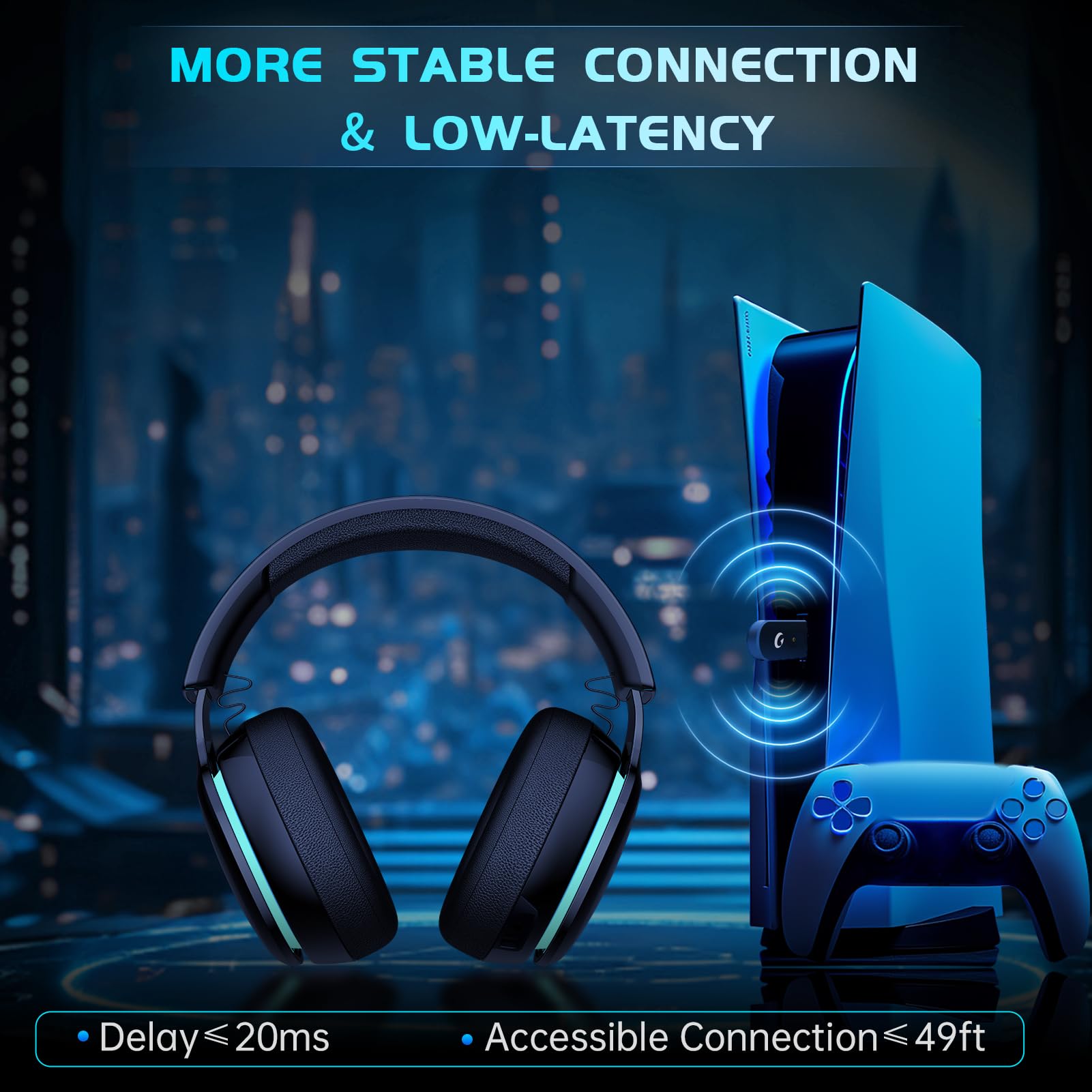 Stable Connection & Stereo Sound: Gtheos Captain 300 wireless gaming headset combines high performance 2.4GHz lossless wireless technology for the accessible connection up to 49 feet in an unobstructed space. Lower latency (≤20ms) and featuring 50mm driver with 30% extra sound effect ensure that the wireless gaming headphones provide higher quality stereo sound, which makes you sense voice of directions, footsteps and every details clearly in games for a better immersive gaming experience. This ps5 headset is very suitable for Fortnite/starfield/Call of Duty/PUBG